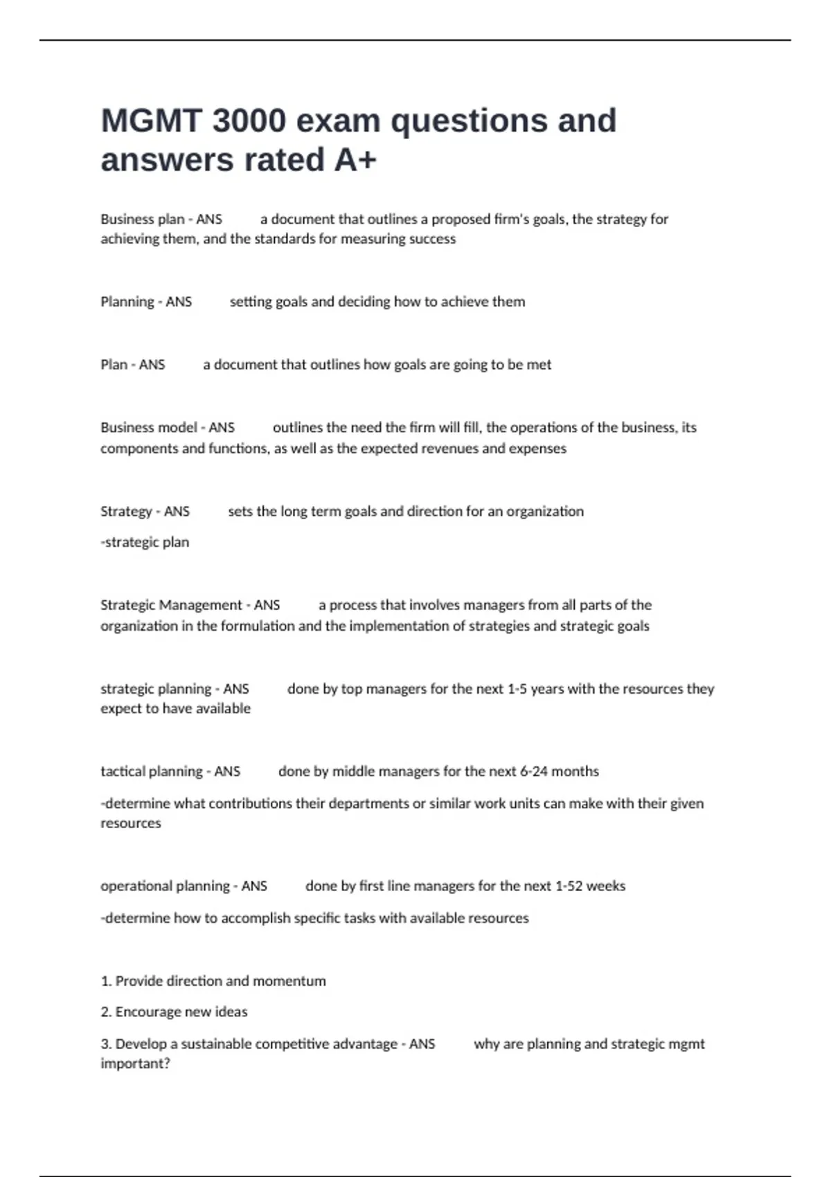 Strategic Management - ANS✅✅a process that involves managers from all parts of the