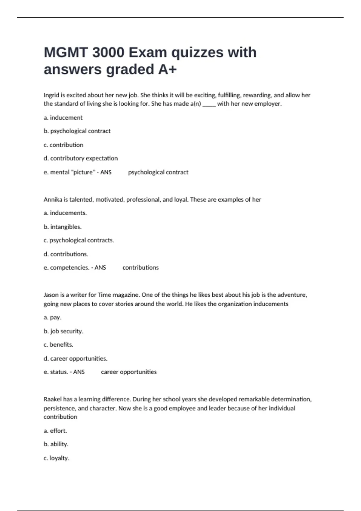 MGMT 3000 Exam quizzes with