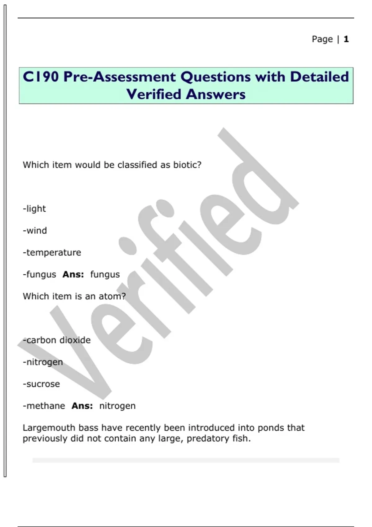 C190 Pre-Assessment Questions with Detailed