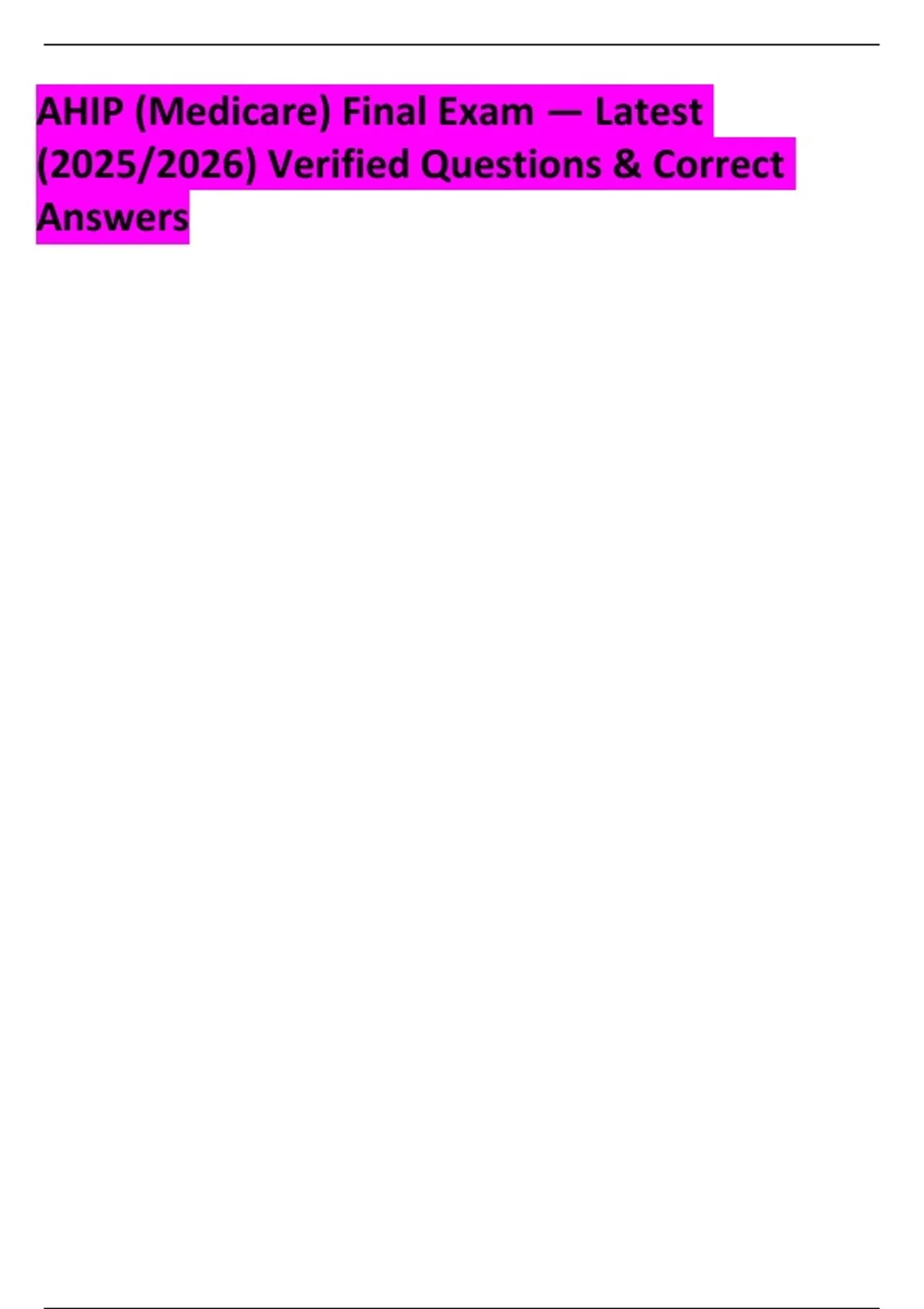 AHIP (Medicare) Final Exam — Latest (2025/2026) Verified Questions & Correct Answers