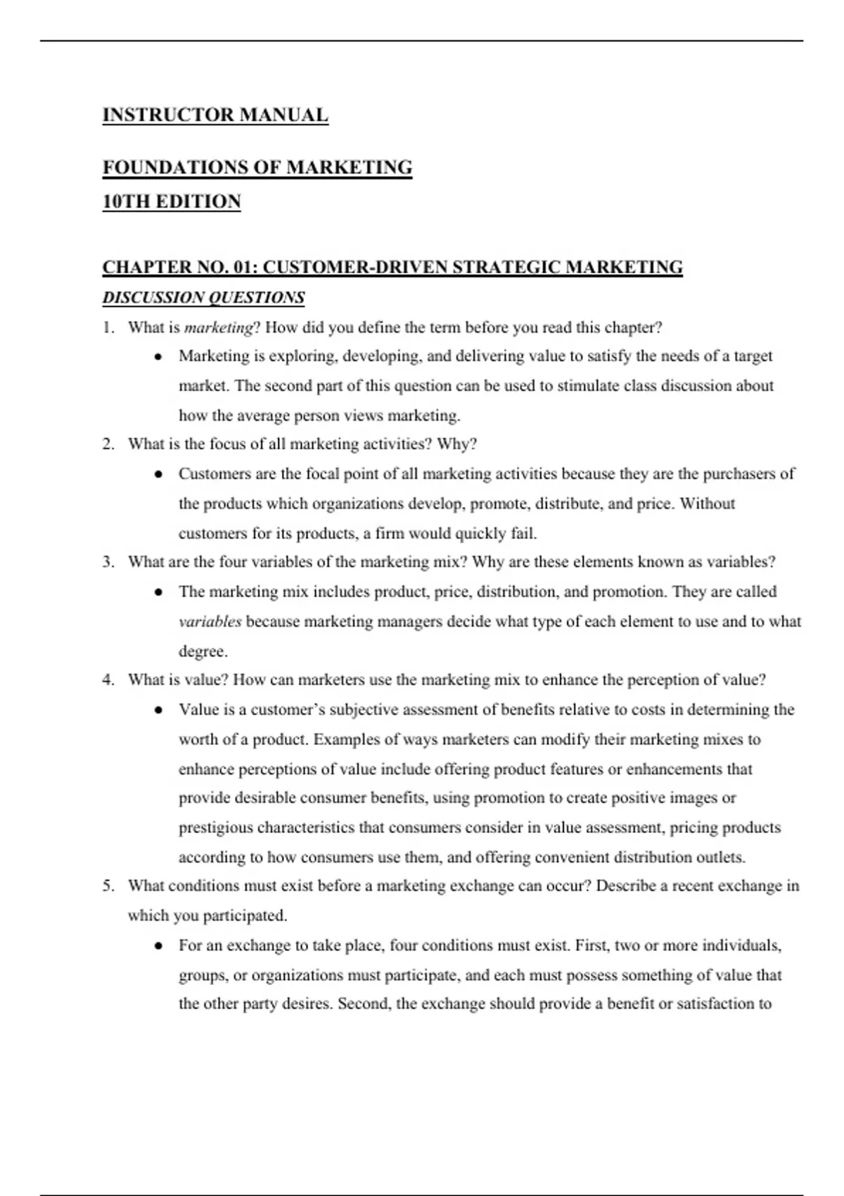 Instructor Manual - Foundations of Marketing (10th Edition) by Pride & Ferrell | Complete Solutions