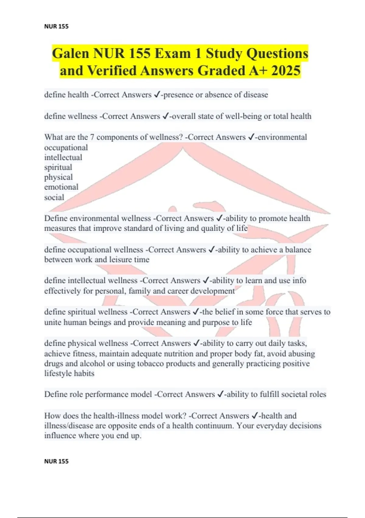 define wellness -Correct Answers ✔-overall state of well-being or total health