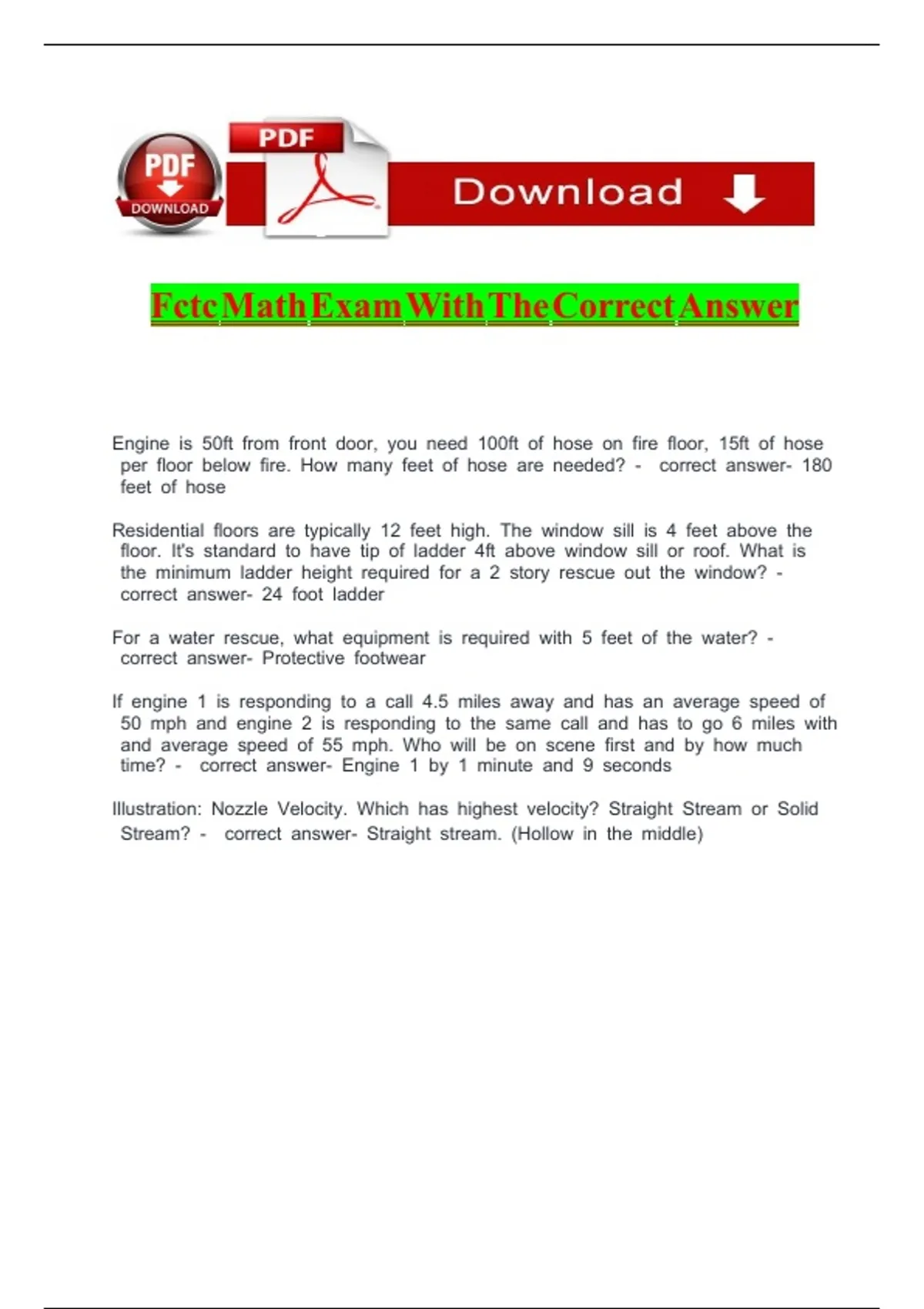 Fctc Math Exam With The Correct Answer v v v v v v