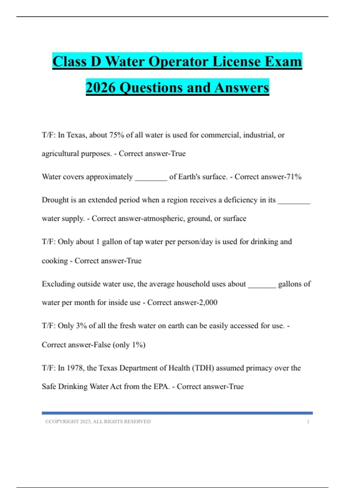 Class D Water Operator License Exam