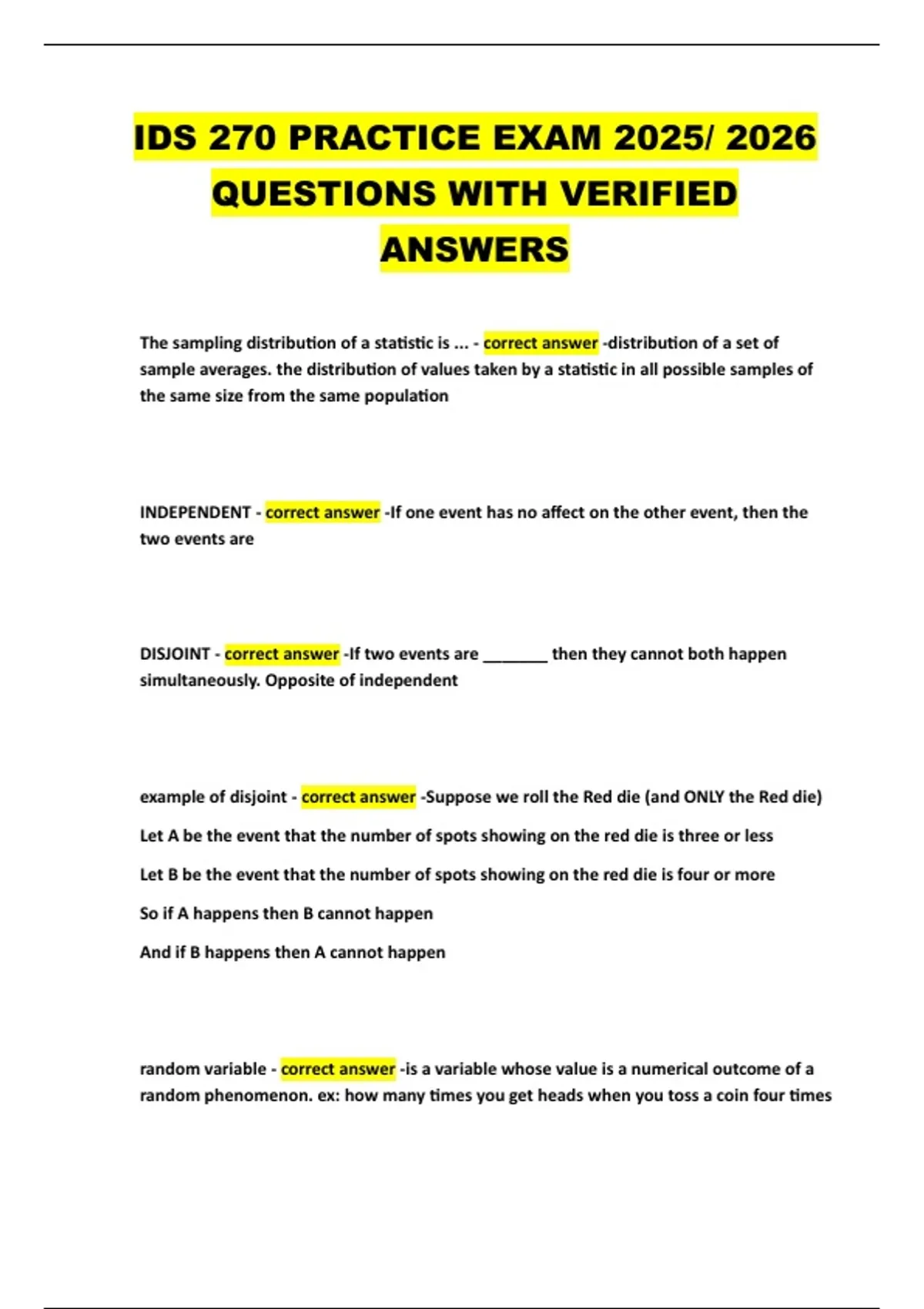 random variable - correct answer -is a variable whose value is a numerical outcome of a