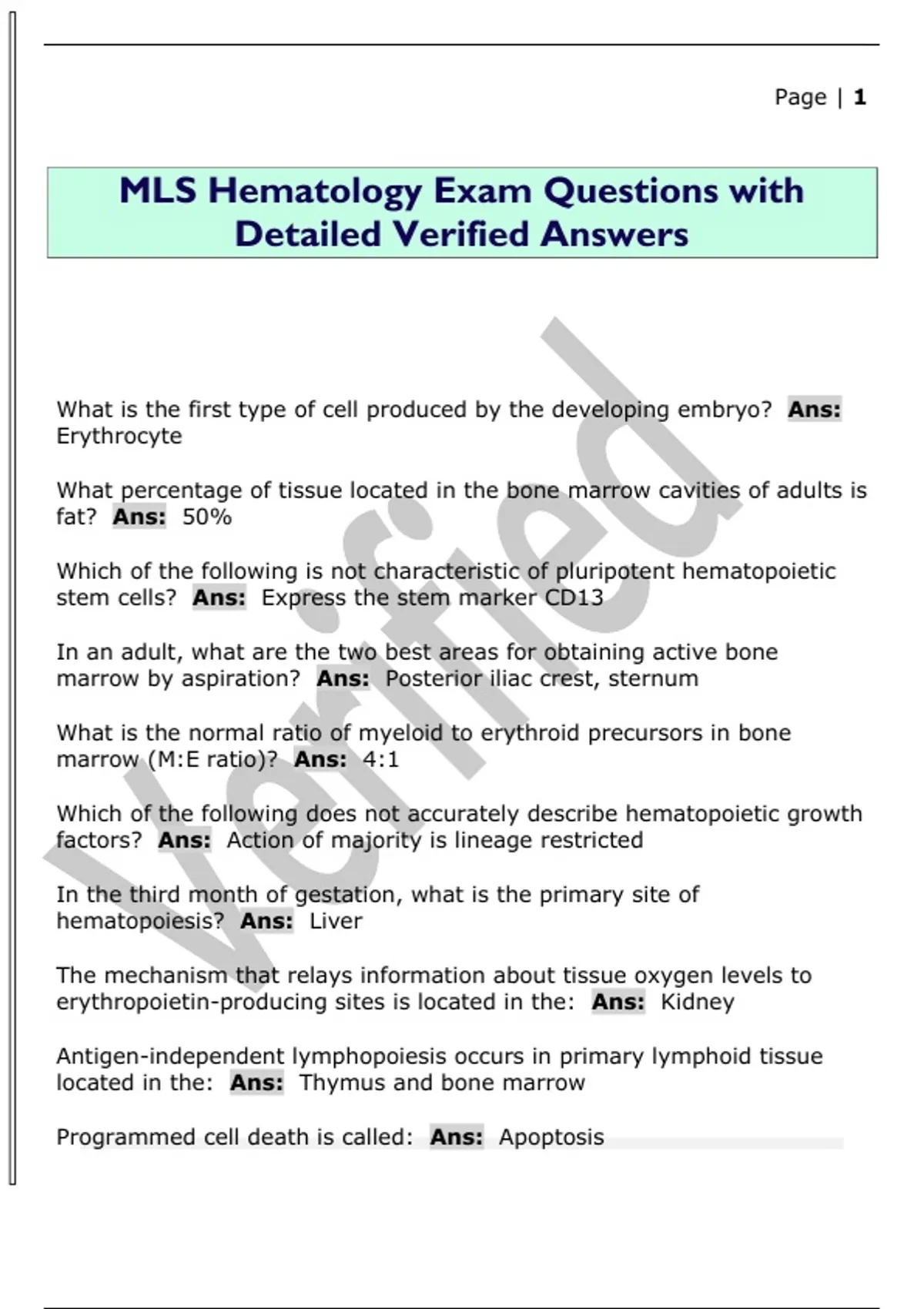 MLS Hematology Exam Questions with Detailed Verified Answers