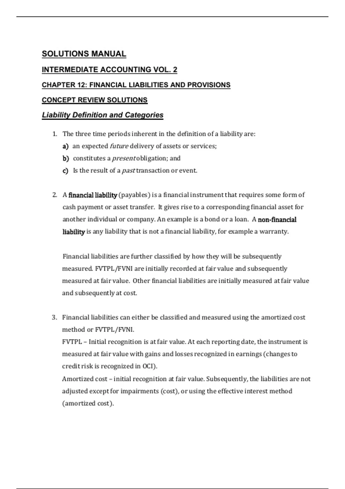 CHAPTER 12: FINANCIAL LIABILITIES AND PROVISIONS