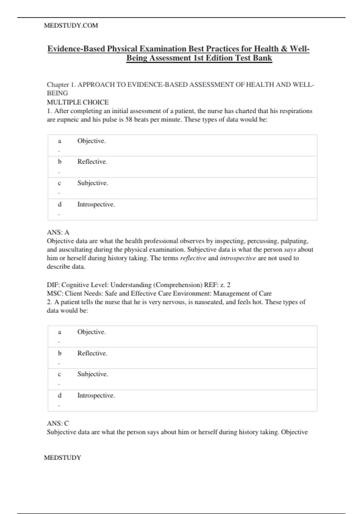 Test Bank for Evidence-Based Physical Examination: Best Practices for Health & Well-Being Assessment (Paperback) – Comprehensive Book for Teaching Physical and Health Assessment Techniques First Edition by Kate Gawlik||ISBN:9780826164537