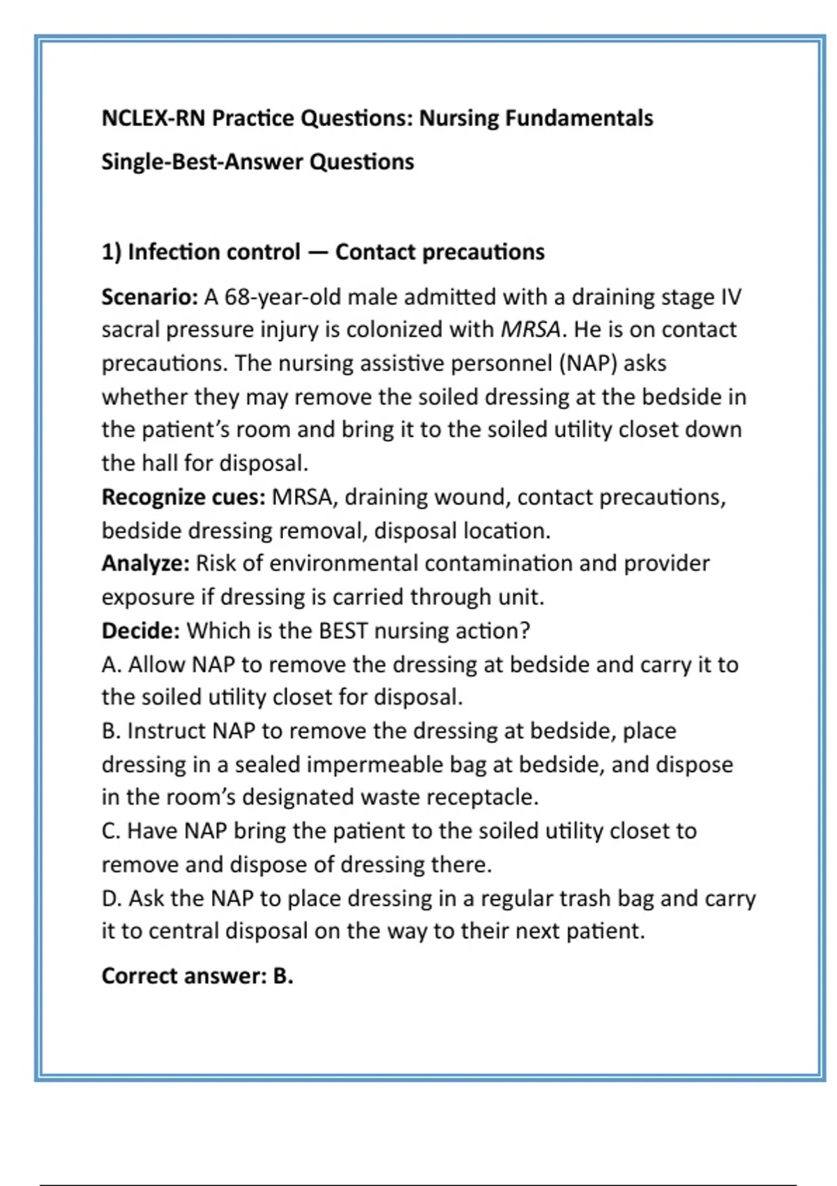 1) Infection control — Contact precautions
