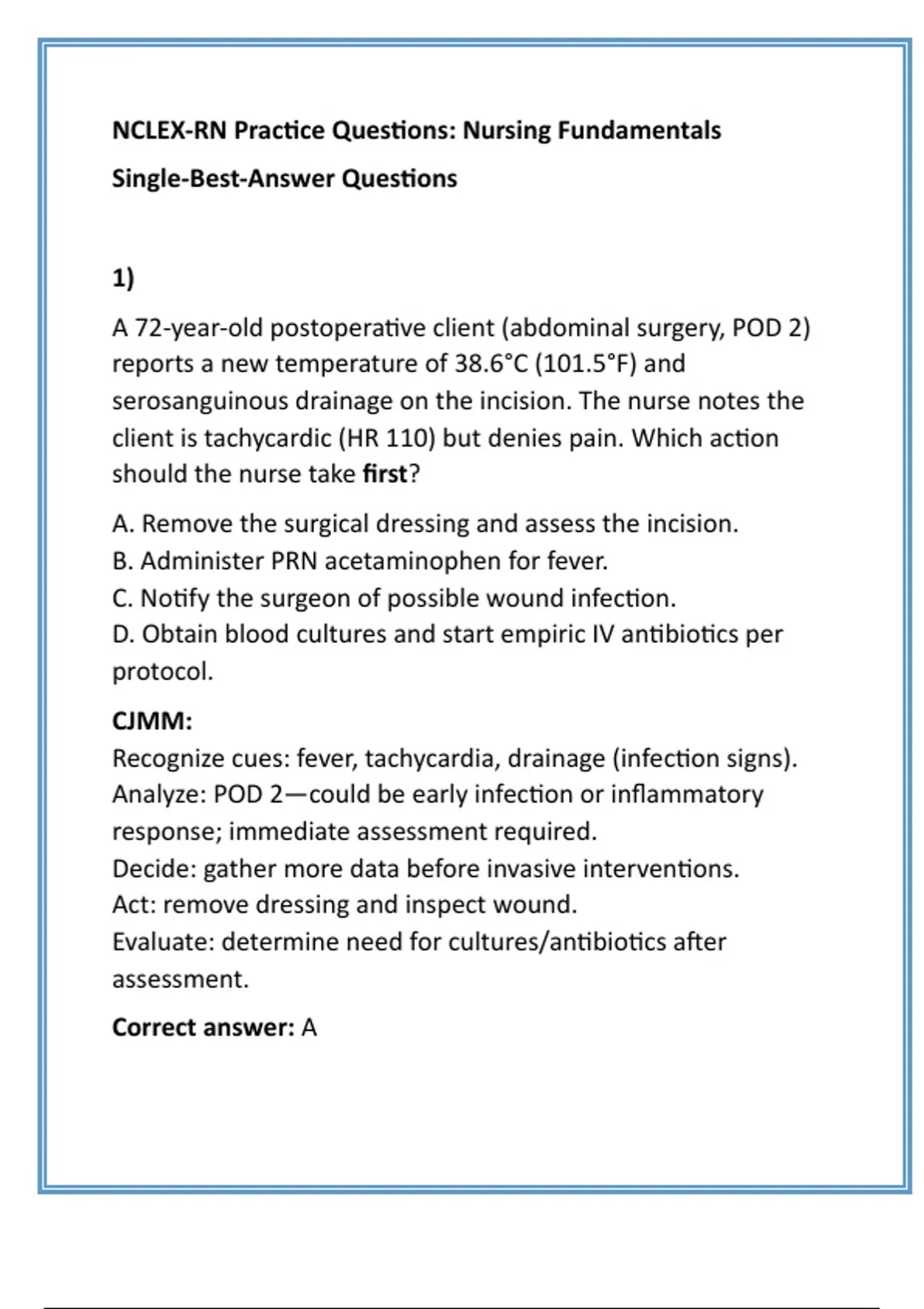 Comprehensive NCLEX-RN Test Bank — 250+ Saunders Review-Style NGN Questions for Fundamentals of Nursing (2025 CJMM Aligned) Meta description (150–160 characters) 250+ NCLEX-RN Test Bank Qs — Saunders Review-style NGN items covering Fundamentals of Nursing. Clinically mapped to 2025 CJMM for confident exam readiness. 10–12 targeted SEO keywords NCLEX-RN Test Bank Saunders Review practice questions Fundamentals of Nursing Qs NGN-style NCLEX questions 2025 NCLEX test prep Clinical Judgment Measurement Model Nursing exam question bank RN exam practice questions NCLEX question rationales Nursing educator test bank Prioritization and delegation NCLEX Infection control NCLEX practice 10 hashtags for social sharing #NCLEXRN #SaundersReview #NursingStudent #NGNQuestions #NCLEXPrep #FundamentalsOfNursing #NurseExam #TestBank #NurseEducator #StudySmart Long-form product description (≈470–560 words)