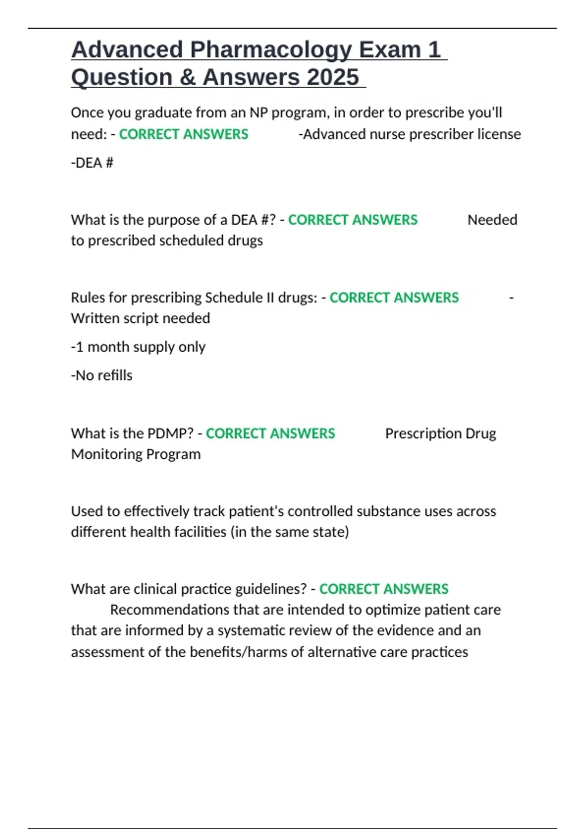 Rules for prescribing Schedule II drugs: - CORRECT ANSWERS ✔✔-