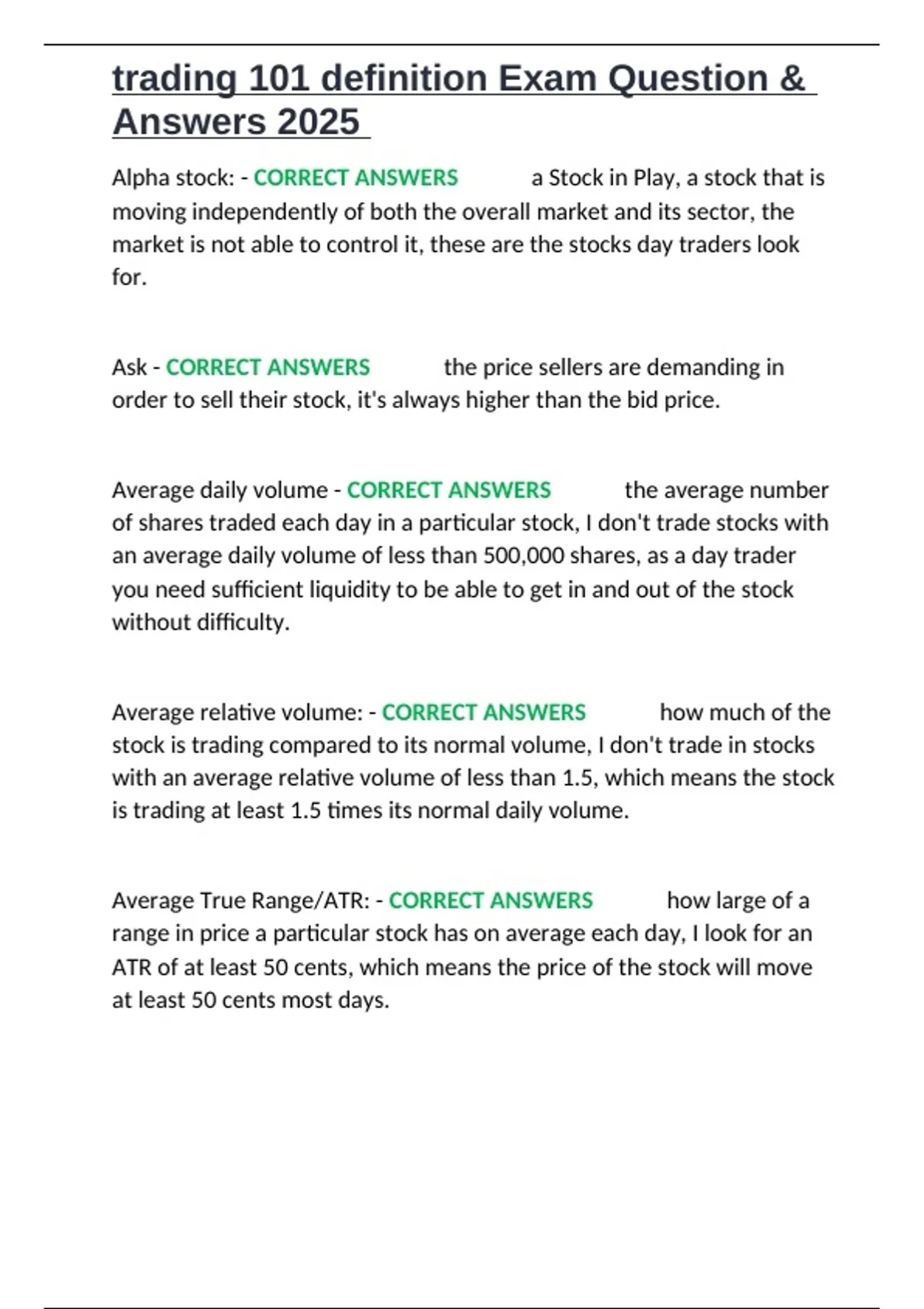 trading 101 definition Exam Question & Answers 2025.docx