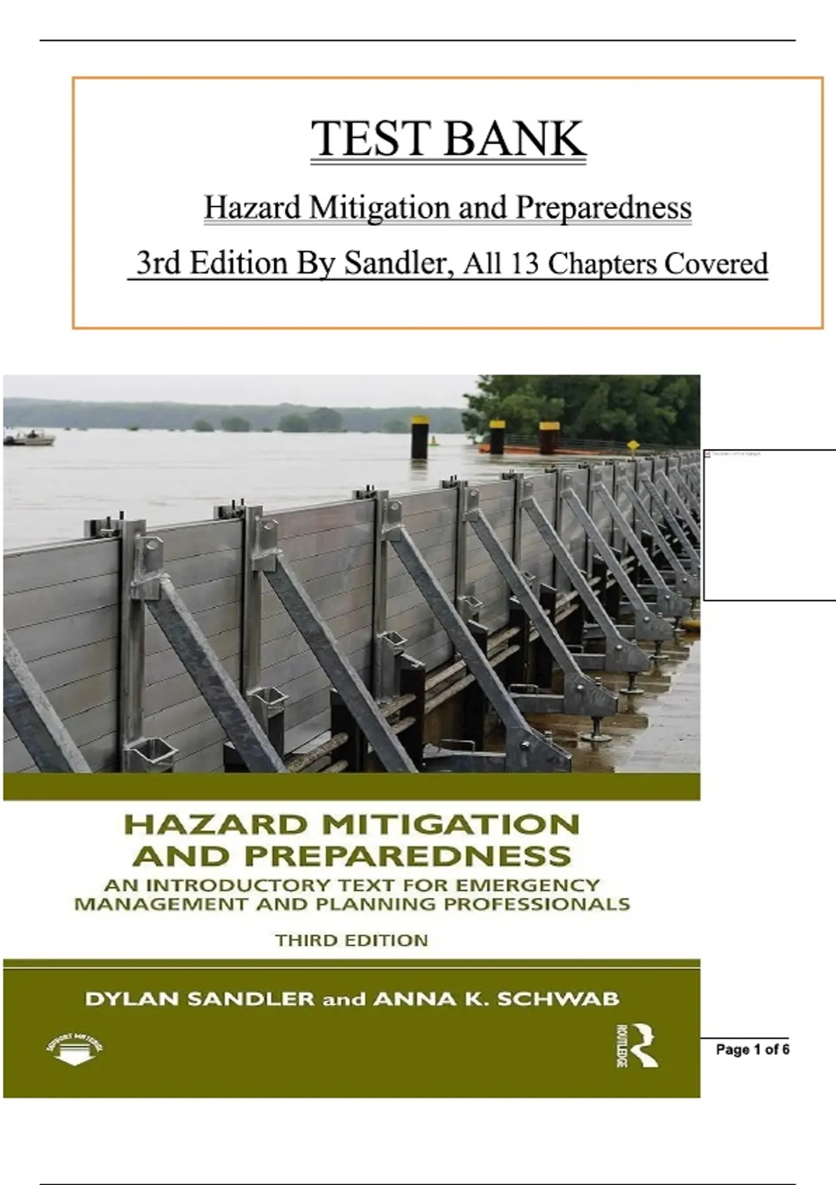 INSTANT PDF DOWNLOAD. This verified test bank is based on Hazard Mitigation and Preparedness (3rd Edition) by Sandler and co-authors, covering all 13 chapters in detail. It features multiple-choice, true/false, and scenario-based questions with accurate answer keys. Topics include hazard identification, risk analysis, emergency management, disaster preparedness, mitigation planning, community resilience, and post-disaster recovery. Ideal for emergency management, public administration, and environmental science students, this test bank aligns with the 3rd edition and is designed to support course assessments and certification exam preparation