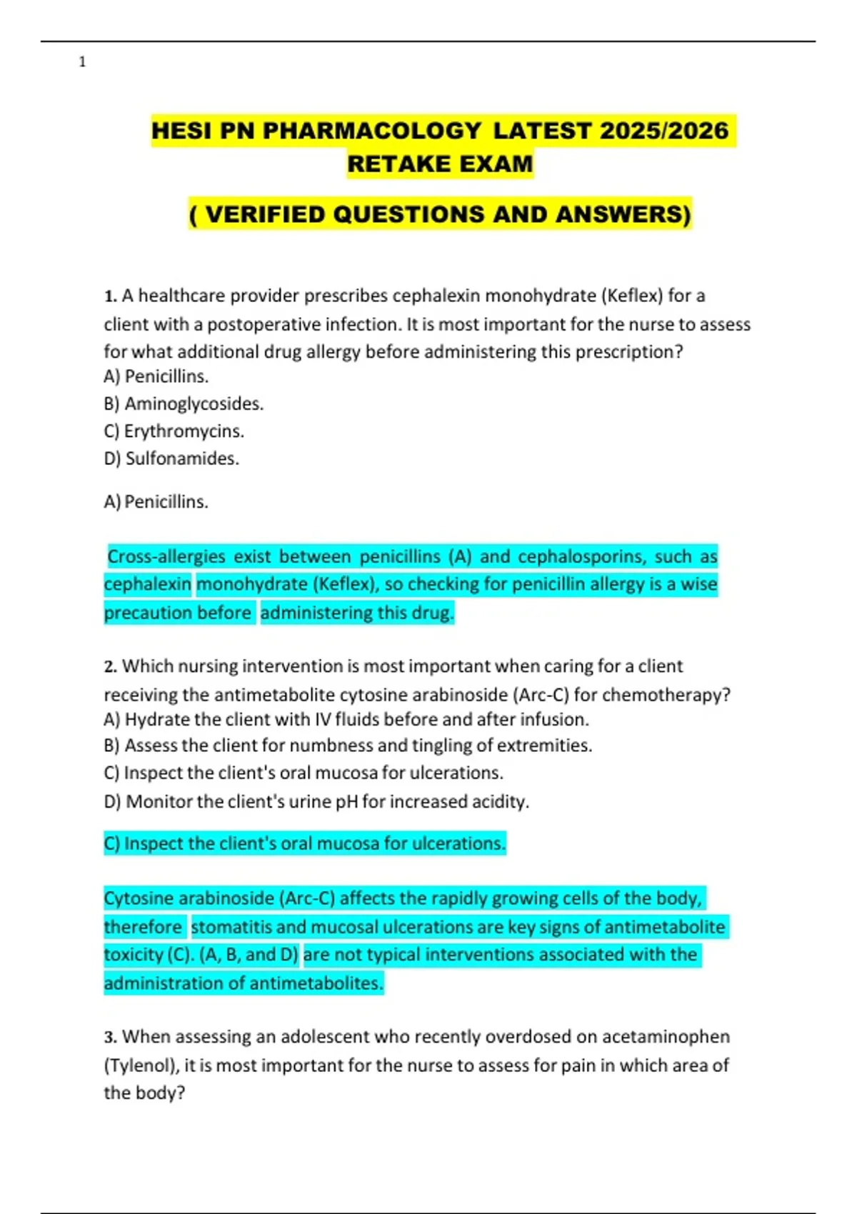 HESI PN PHARMACOLOGY LATEST 2025/2026