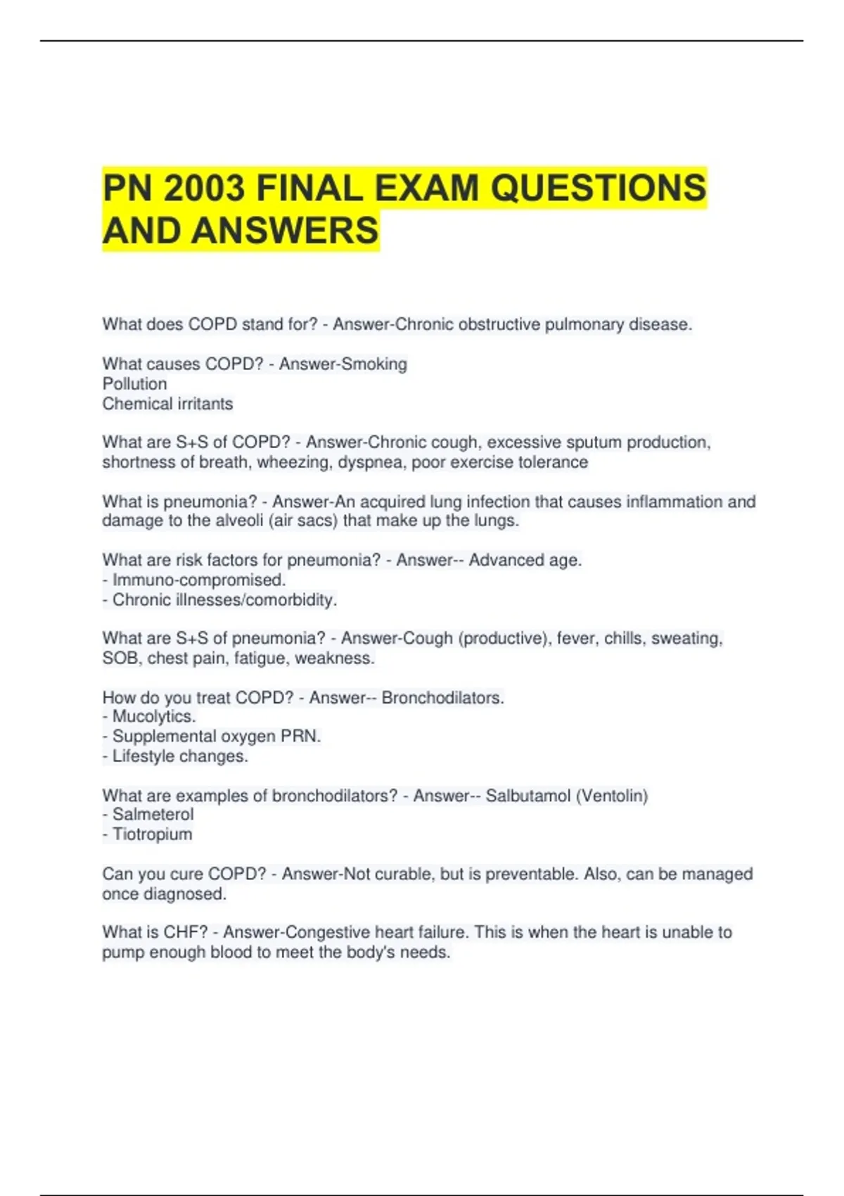 PN 2003 FINAL EXAM QUESTIONS AND ANSWERS