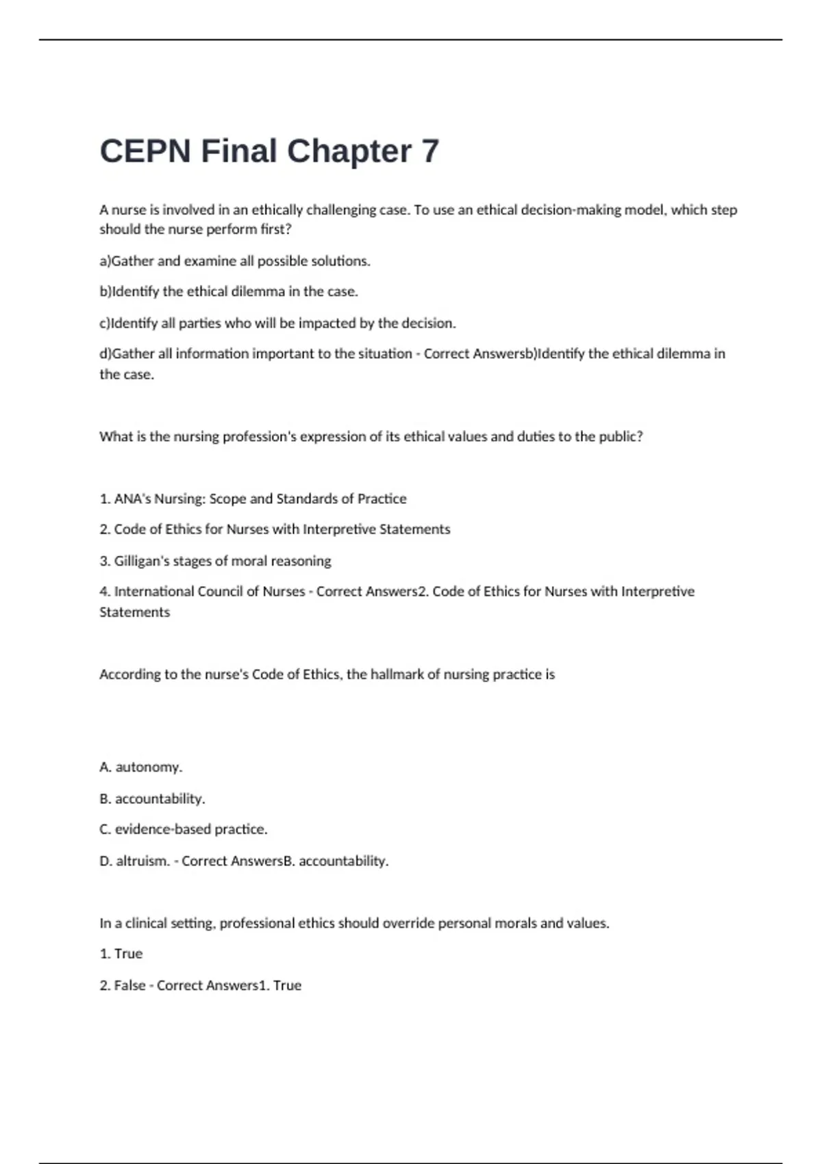 4. International Council of Nurses - Correct Answers2. Code of Ethics for Nurses with Interpretive