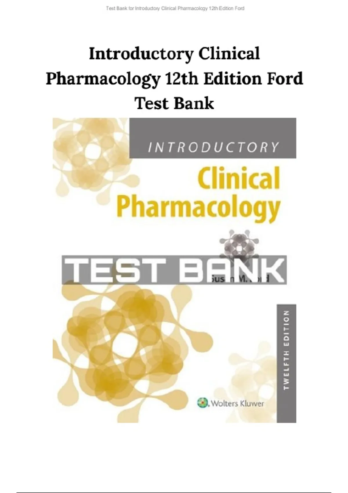 This comprehensive test bank for Introductory Clinical Pharmacology (12th Edition) by Ford provides verified exam questions and detailed answers covering all major drug classes, dosage principles, and patient safety concepts. Designed for nursing and pharmacology students, it helps learners master medication administration, pharmacodynamics, and clinical application. Perfect for quizzes, midterms, and NCLEX-style preparation, this resource ensures full coverage of key pharmacology chapters for confident exam performance.