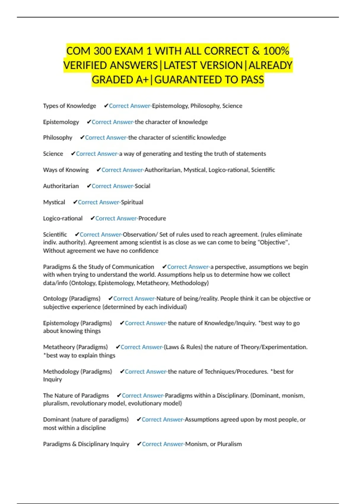 COM 300 EXAM 1 WITH ALL CORRECT & 100% VERIFIED ANSWERS|LATEST VERSION|ALREADY GRADED A+|GUARANTEED TO PASS
