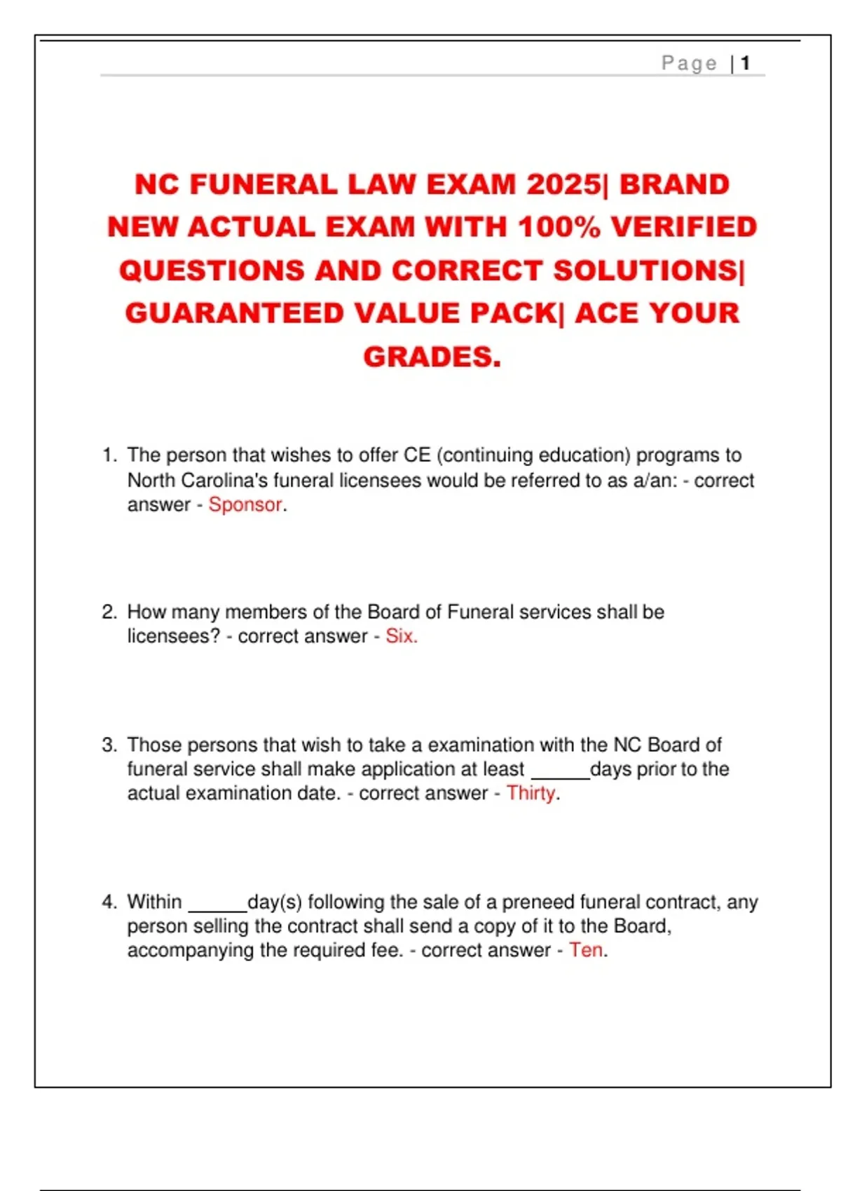 NC FUNERAL LAW EXAM 2025| BRAND