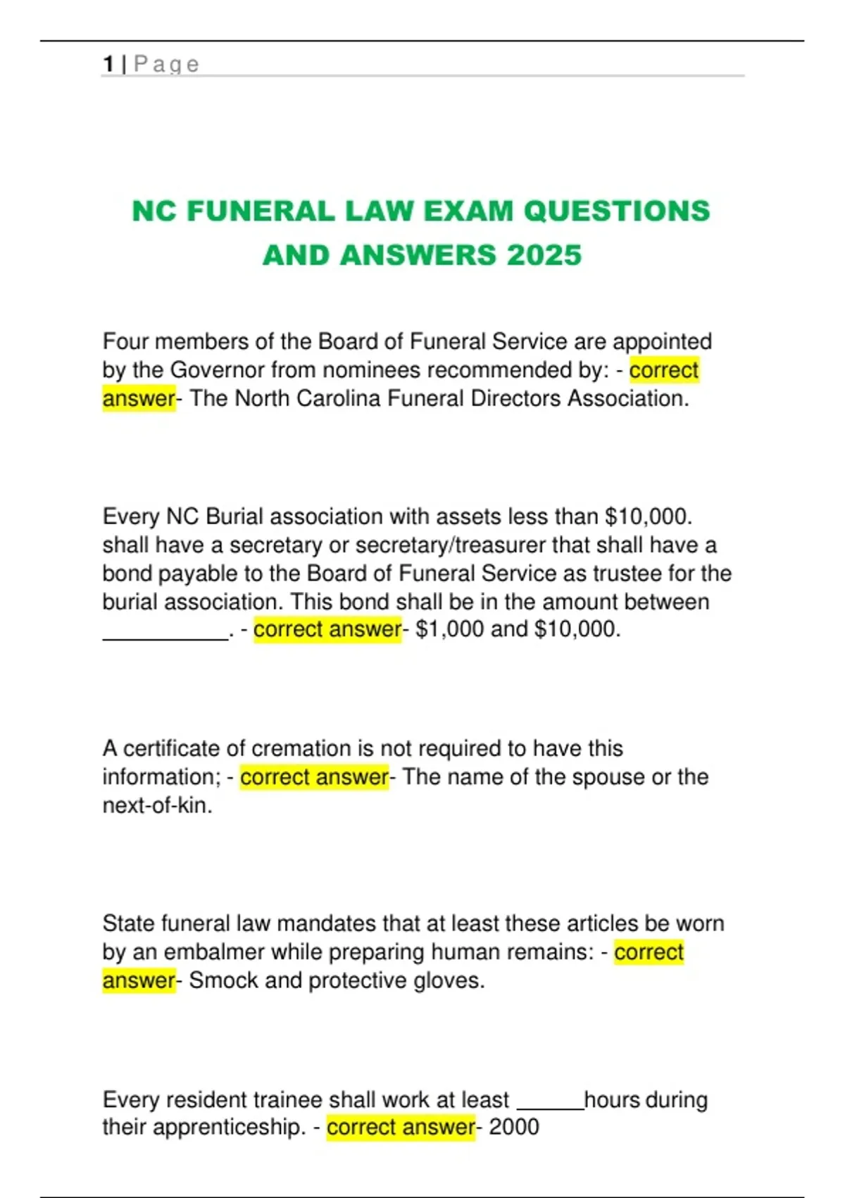NC FUNERAL LAW EXAM QUESTIONS AND ANSWERS 2025.