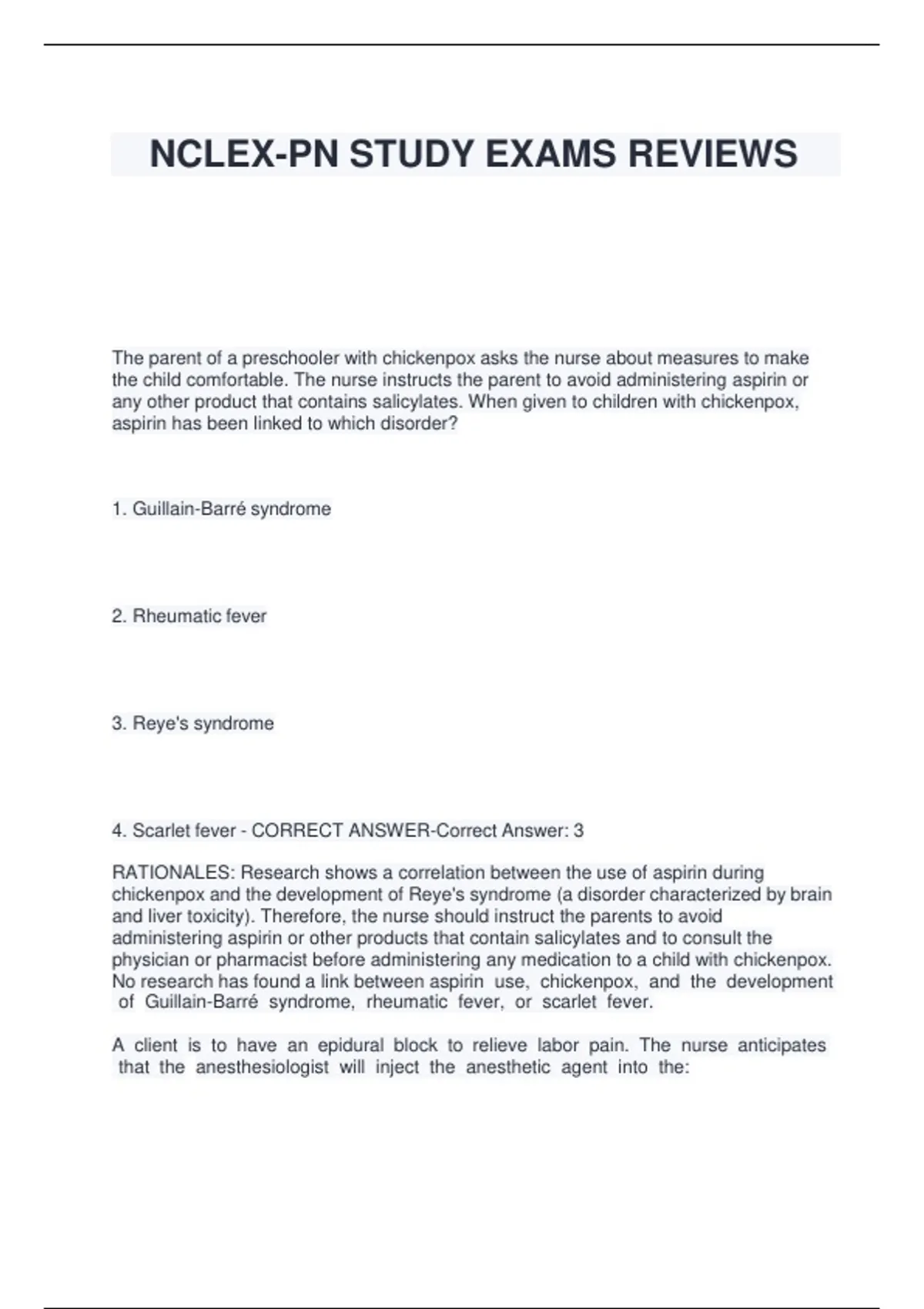 4. Scarlet fever - CORRECT ANSWER-Correct Answer: 3