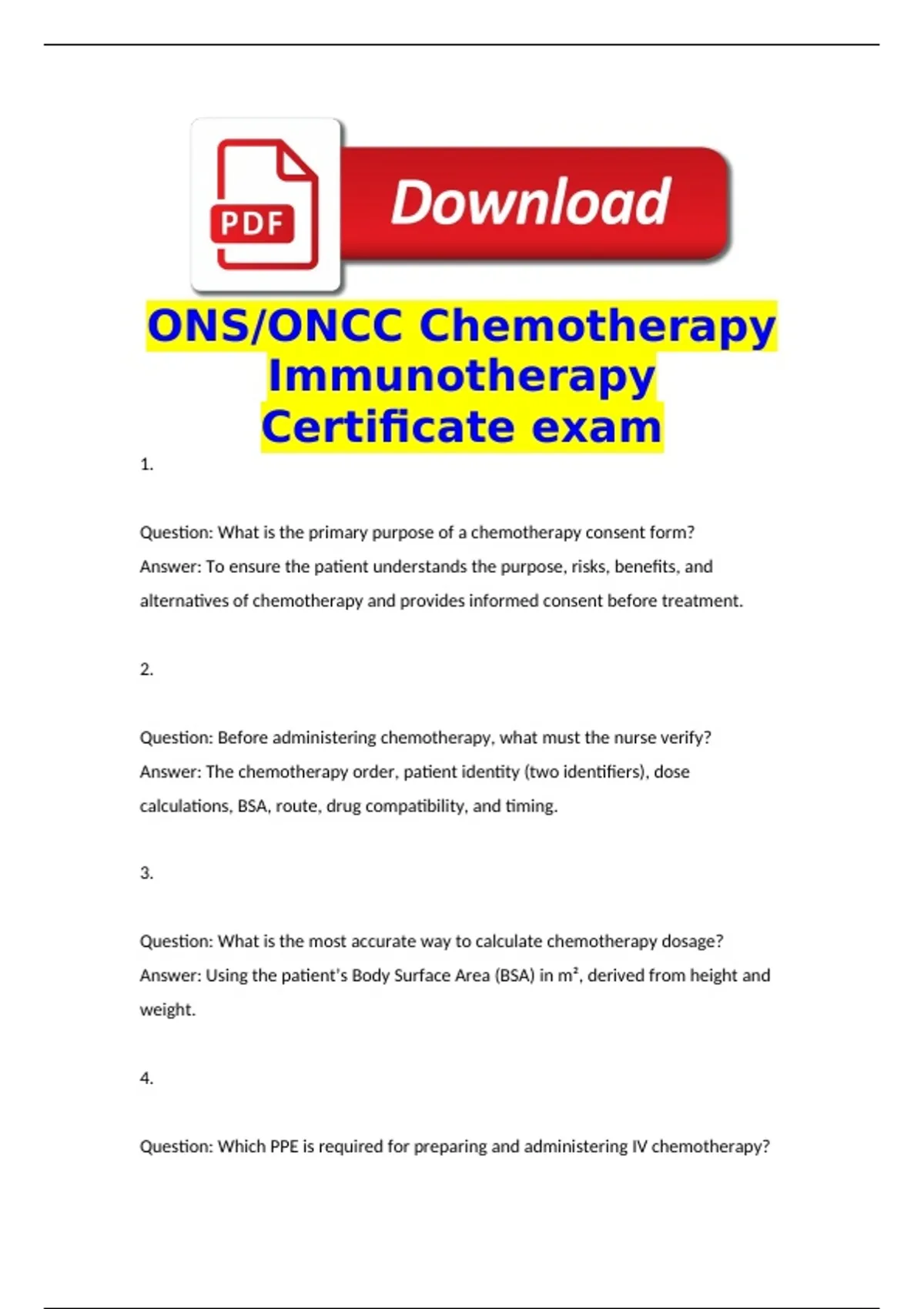 ONS/ONCC Chemotherapy Immunotherapy Certificate exam 2025/2026 with 100% correct answers