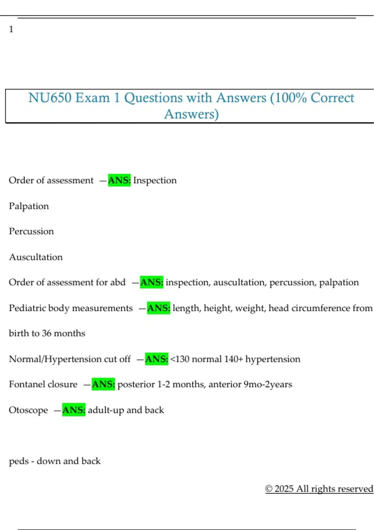 NU650 Exam 1 Questions with Answers (100% Correct