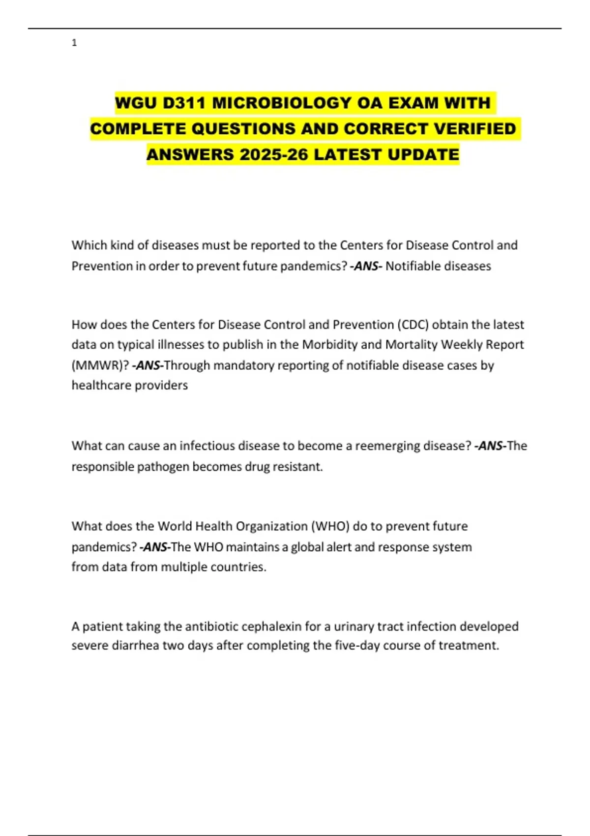 WGU D311 MICROBIOLOGY OA EXAM WITH COMPLETE QUESTIONS AND CORRECT ANSWERS