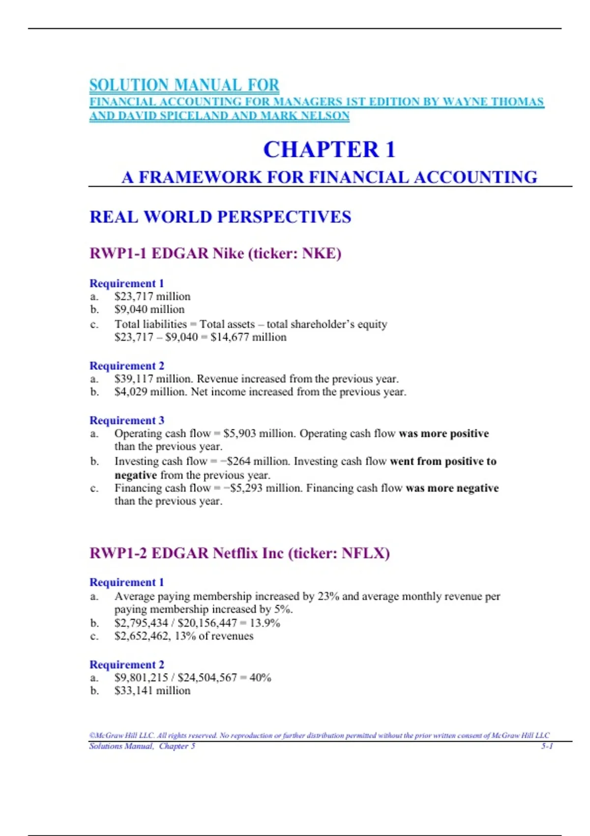 SOLUTION MANUAL FOR FINANCIAL ACCOUNTING FOR MANAGERS 1ST EDITION BY WAYNE THOMAS AND DAVID SPICELAND AND MARK NELSON