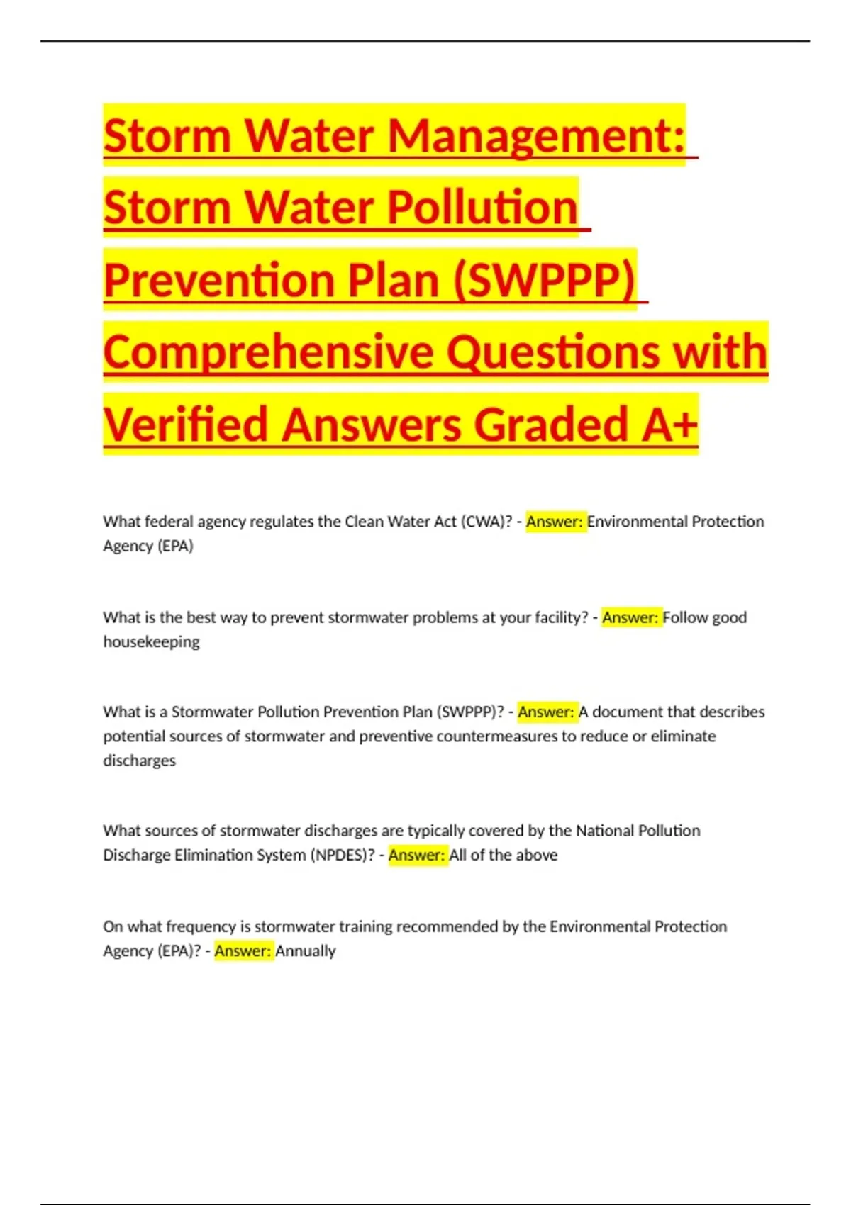 What is a Stormwater Pollution Prevention Plan (SWPPP)? - Answer: A document that describes