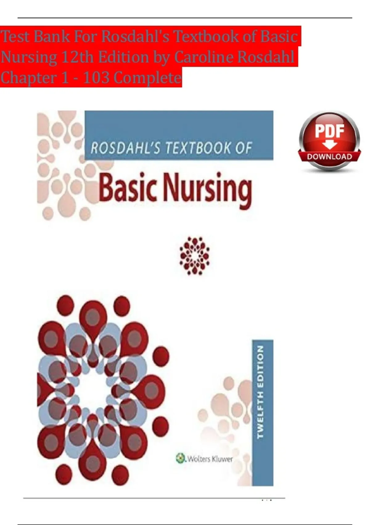 Rosdahl’s Textbook of Basic Nursing (12th Edition, Caroline Rosdahl) — Complete Test Bank for Chapters 1–103
