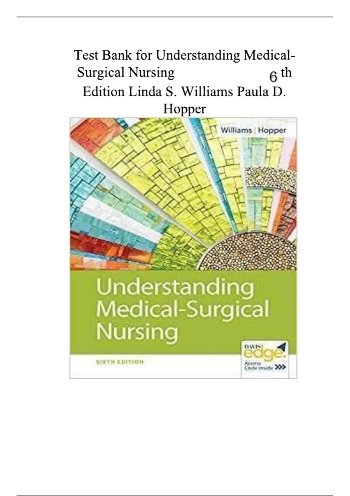 This test bank accompanies Understanding Medical-Surgical Nursing (7th Edition) by Linda S. Williams and Paula D. Hopper. It includes a comprehensive set of multiple-choice, true/false, and critical-thinking questions covering every chapter in the textbook. Each question includes the correct answer and detailed rationale, designed to help nursing students prepare for exams and NCLEX-style assessments. The material aligns with major nursing curricula and is ideal for both instructors and students seeking in-depth review and practice.