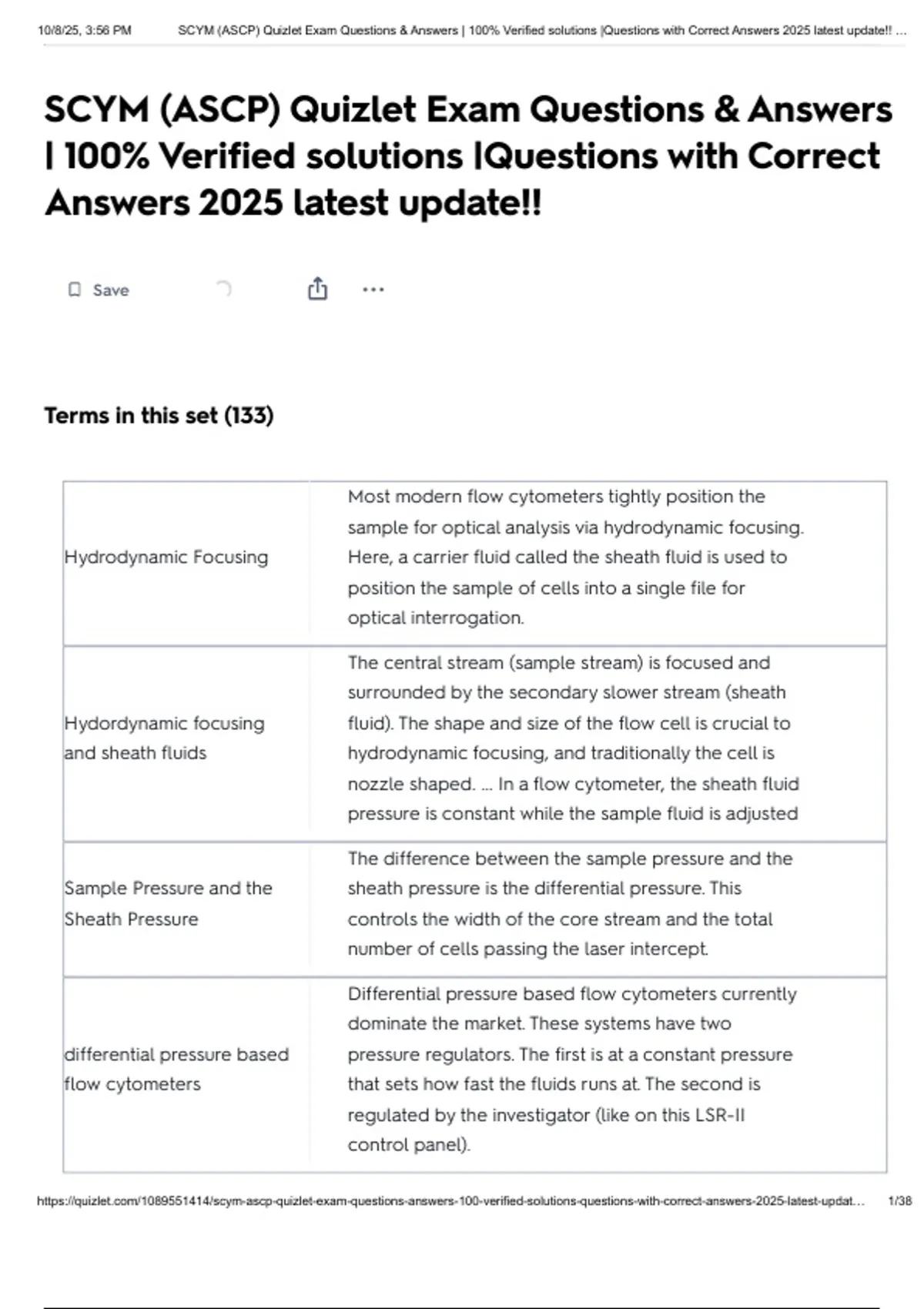 , 10/8/25, 3:56 PM SCYM (ASCP) Quizlet Exam Questions & Answers | 100% Verified solutions |Questions with Correct Answers 2025 latest update!! …