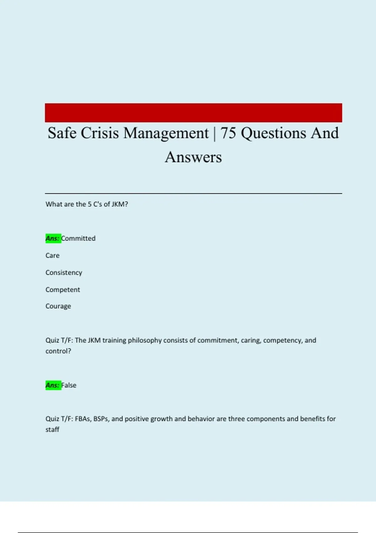 Quiz T/F: FBAs, BSPs, and positive growth and behavior are three components and benefits for