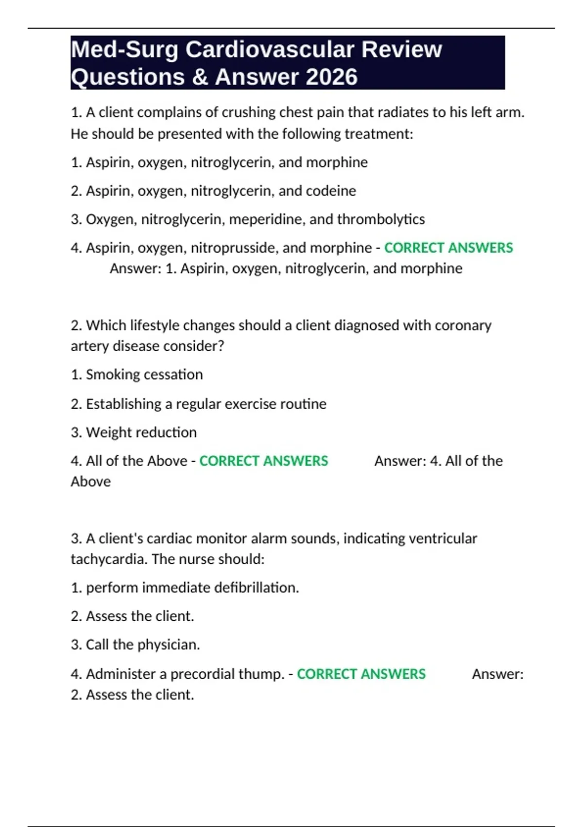 Med-Surg Cardiovascular Revie Questis & Answer