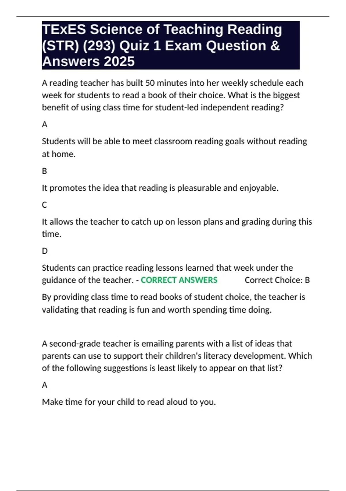 TExES Science of Teaching Reading (STR) (293) Quiz 1 Exam Question & Answers 2025.docx