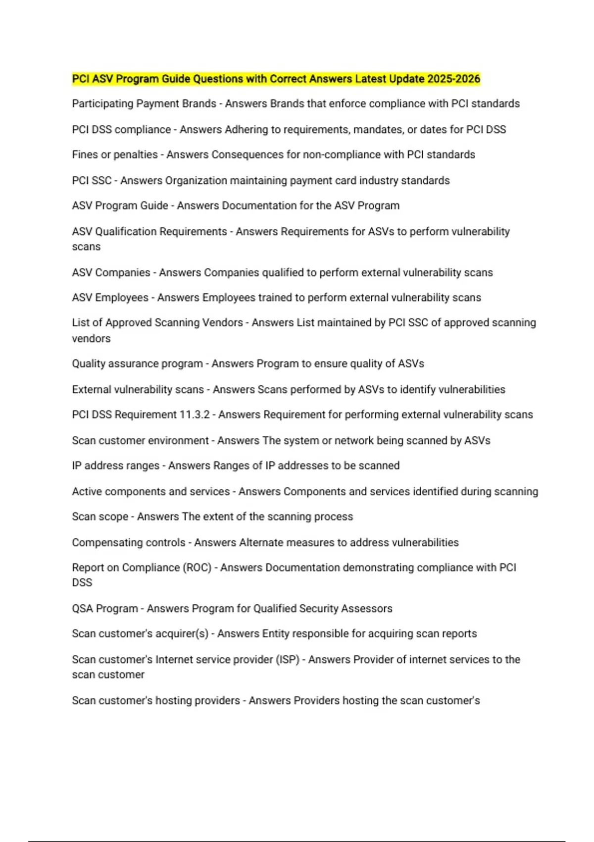 Scan customer environment - Answers The system or network being scanned by ASVs