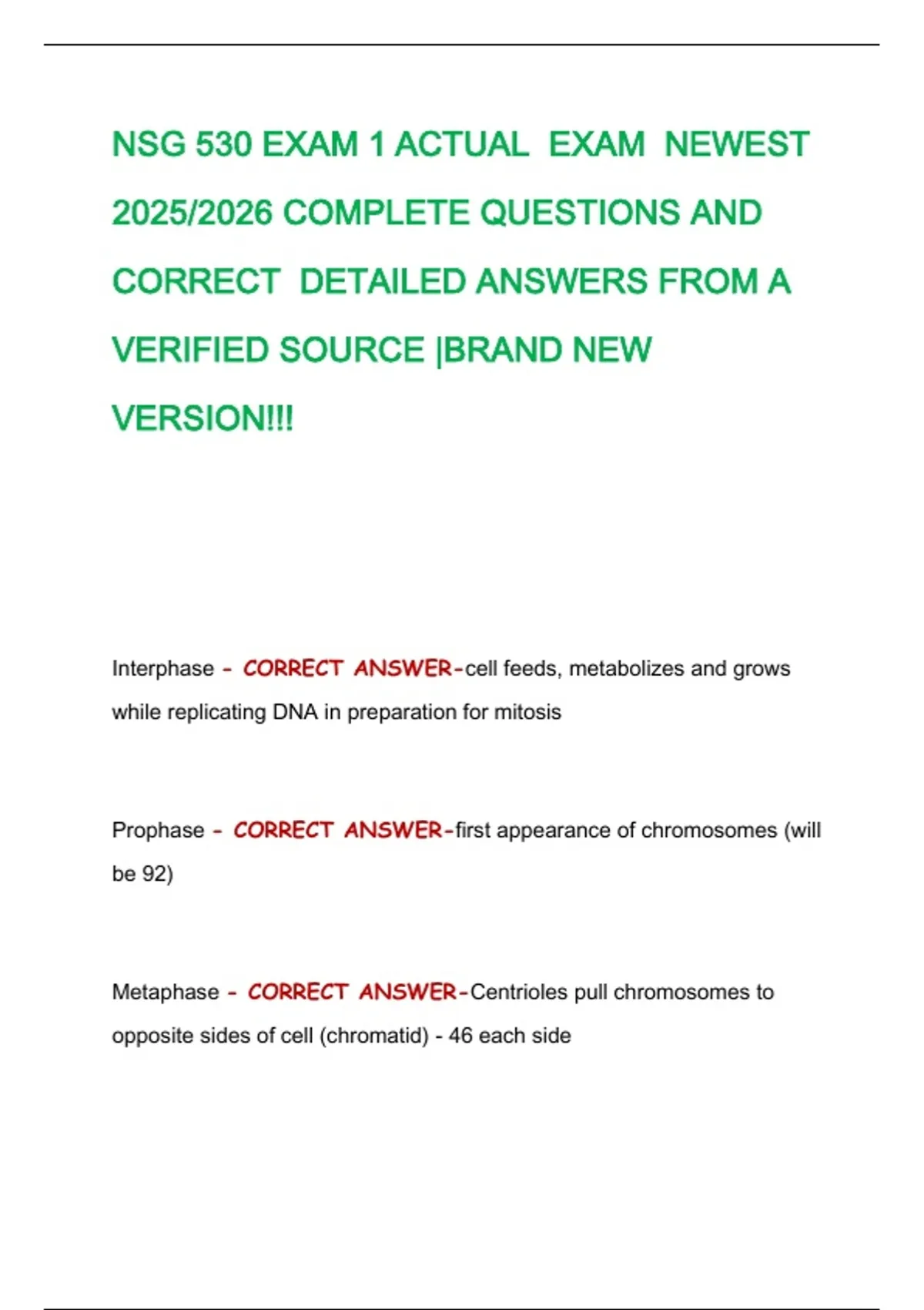 Metaphase - CORRECT ANSWER-Centrioles pull chromosomes to