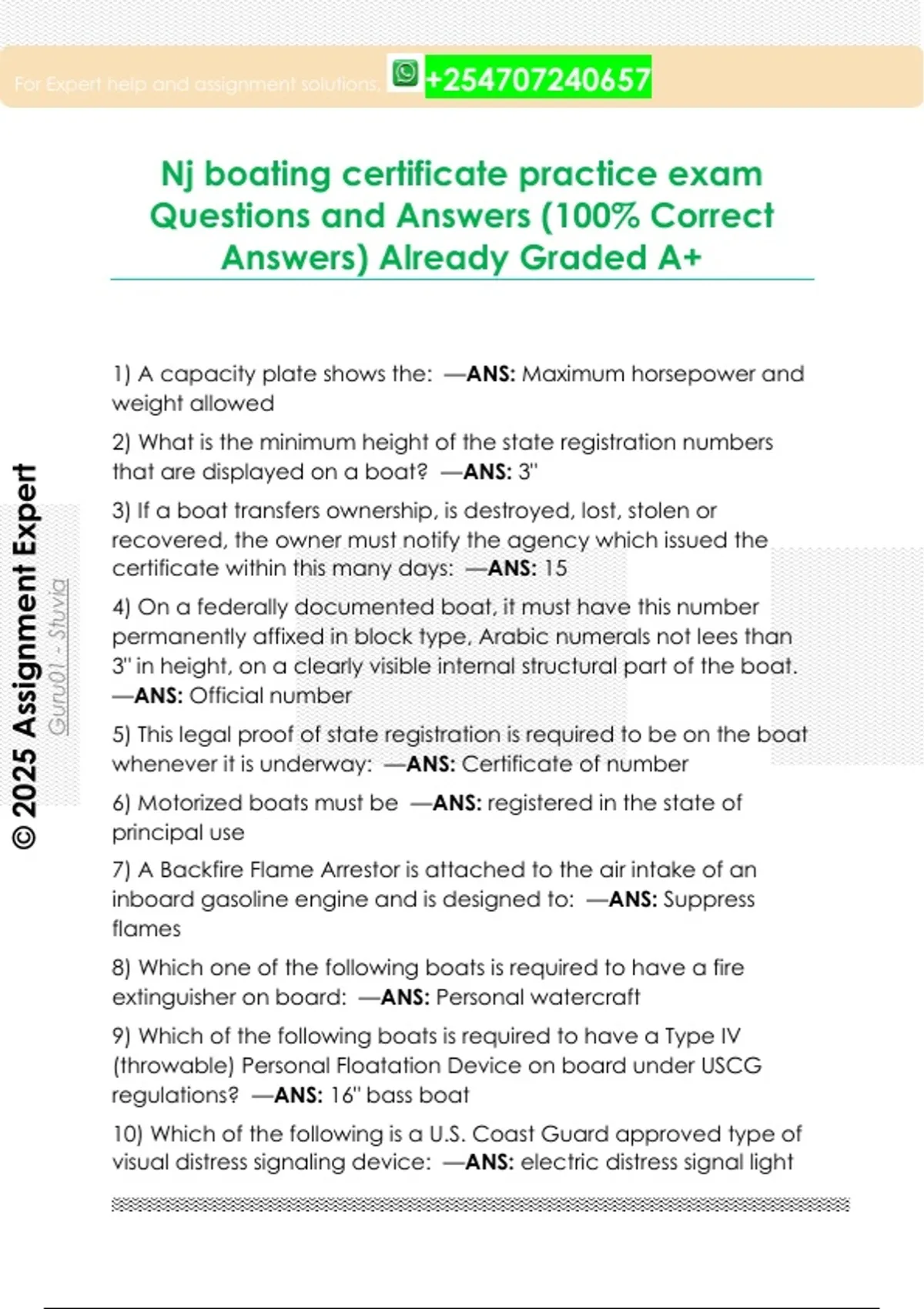 Nj boating certificate practice exam Questions and Answers (100% Correct Answers) Already Graded A+