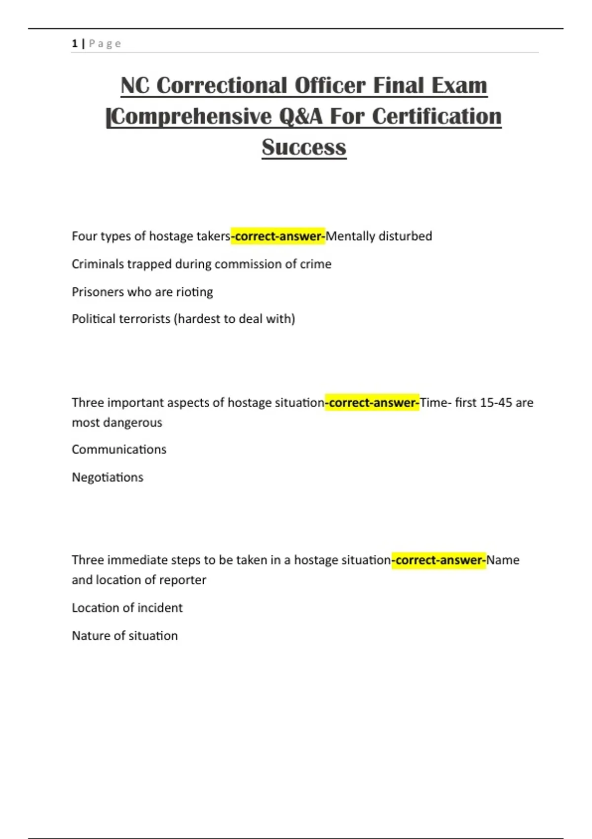 Three important aspects of hostage situation-correct-answer-Time- first 15-45 are