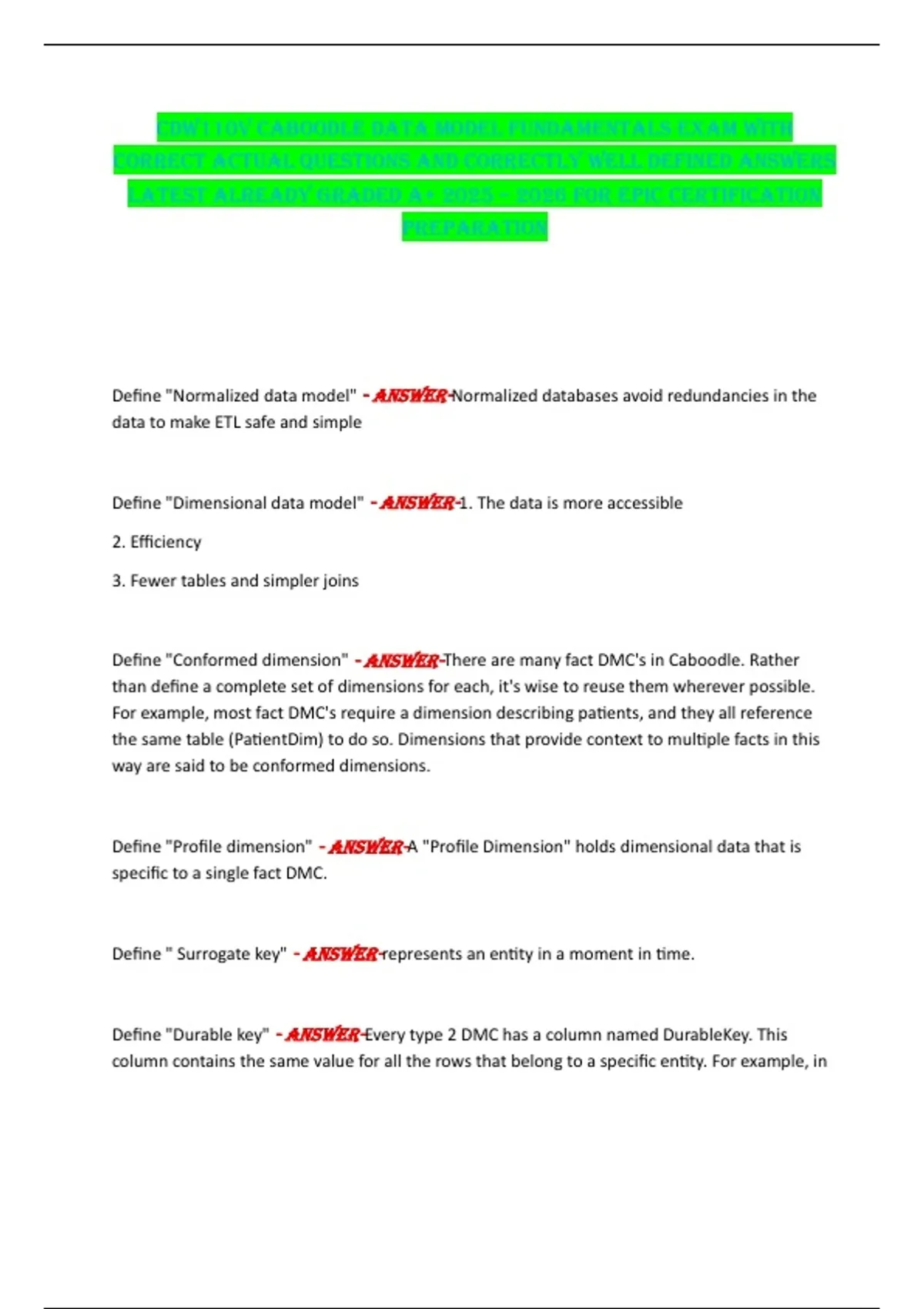 CDW110V CABOODLE DATA MODEL FUNDAMENTALS EXAM WITH CORRECT ACTUAL QUESTIONS AND CORRECTLY WELL DEFINED ANSWERS LATEST ALREADY GRADED A+ 2025 – 2026 FOR EPIC CERTIFICATION PREPARATION
