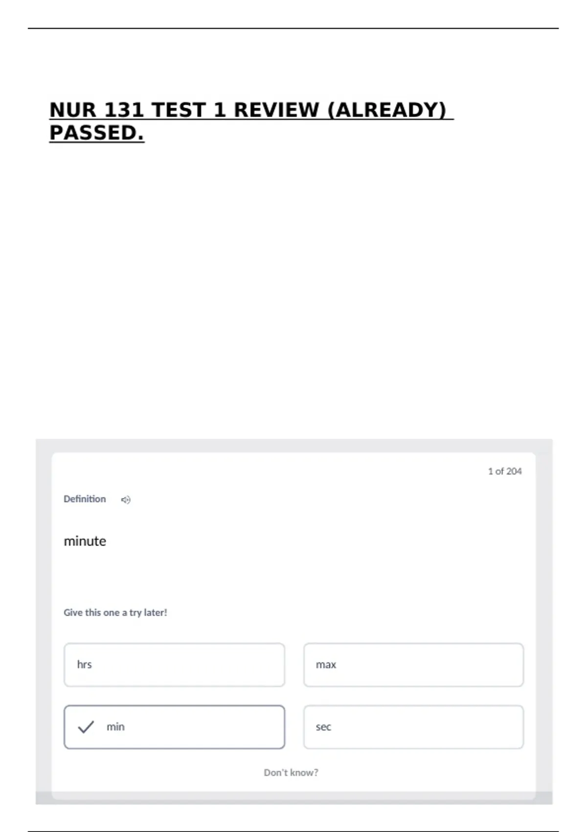 NUR 131 TEST 1 REVIEW (ALREADY) PASSED.