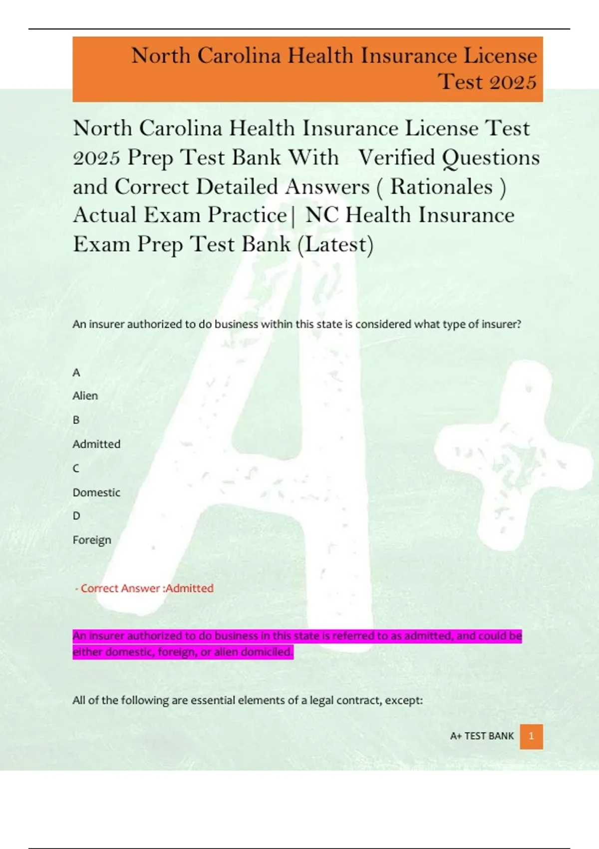 A+ TEST BANK 1