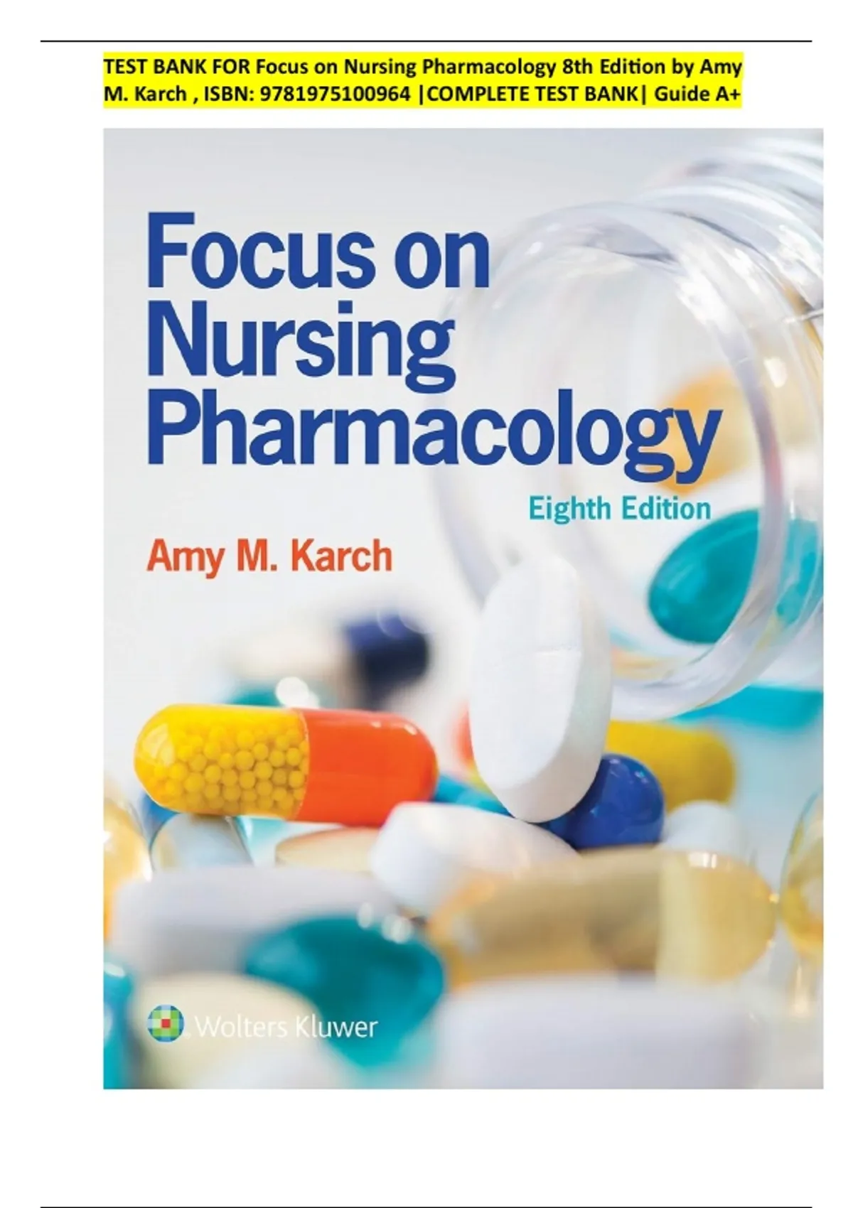 TEST BANK FOR Focus on Nursing Pharmacology 8th Edition by Amy M. Karch ||ISBN: 9781975100964| |COMPLETE TEST BANK|Newest Updated Version| Guide A+