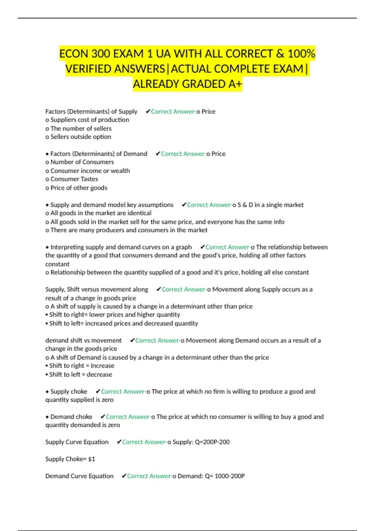 ECON 300 EXAM 1 UA WITH ALL CORRECT & 100% VERIFIED ANSWERS|ACTUAL COMPLETE EXAM| ALREADY GRADED A+