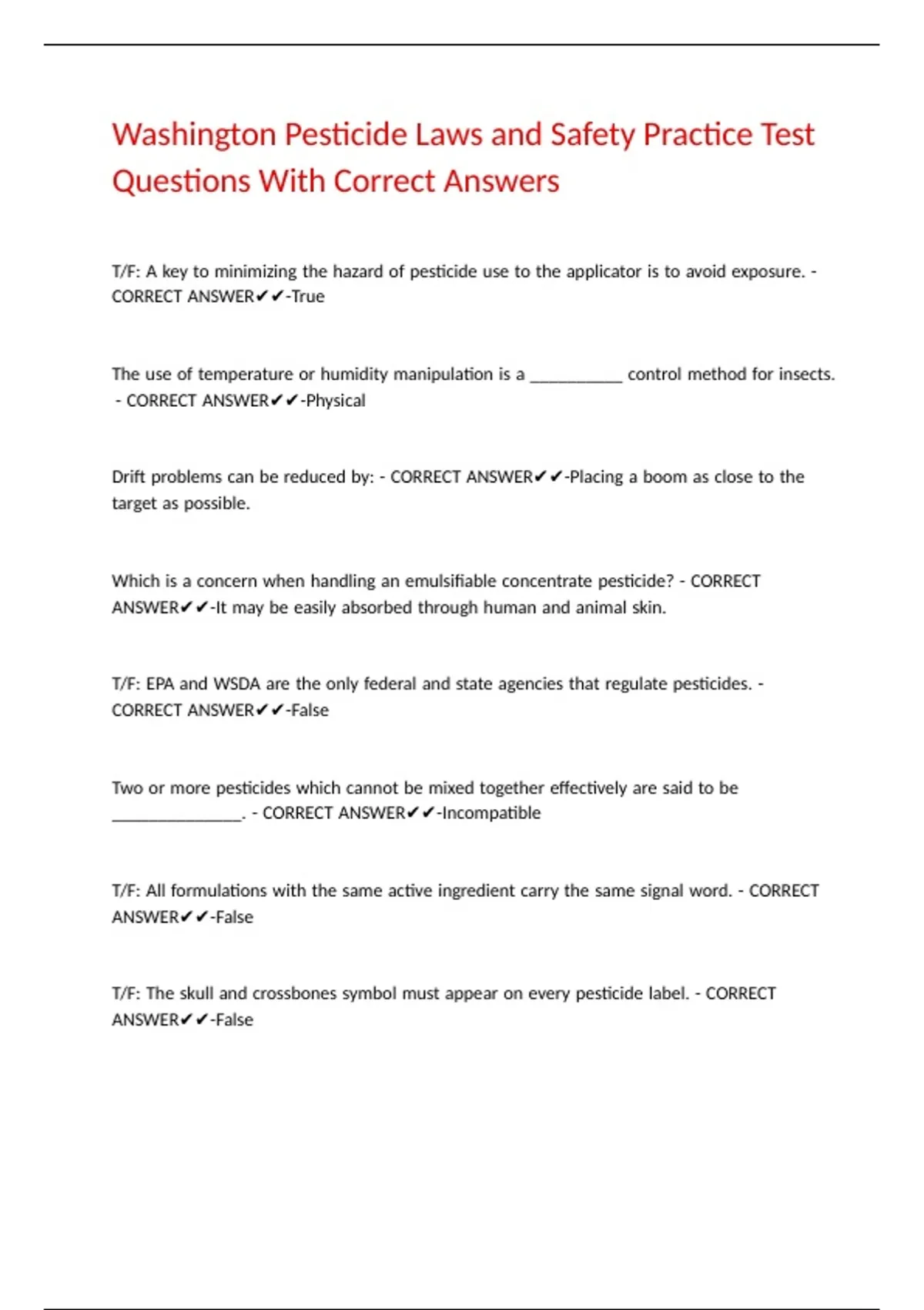 Washington Pesticide Laws and Safety Practice Test