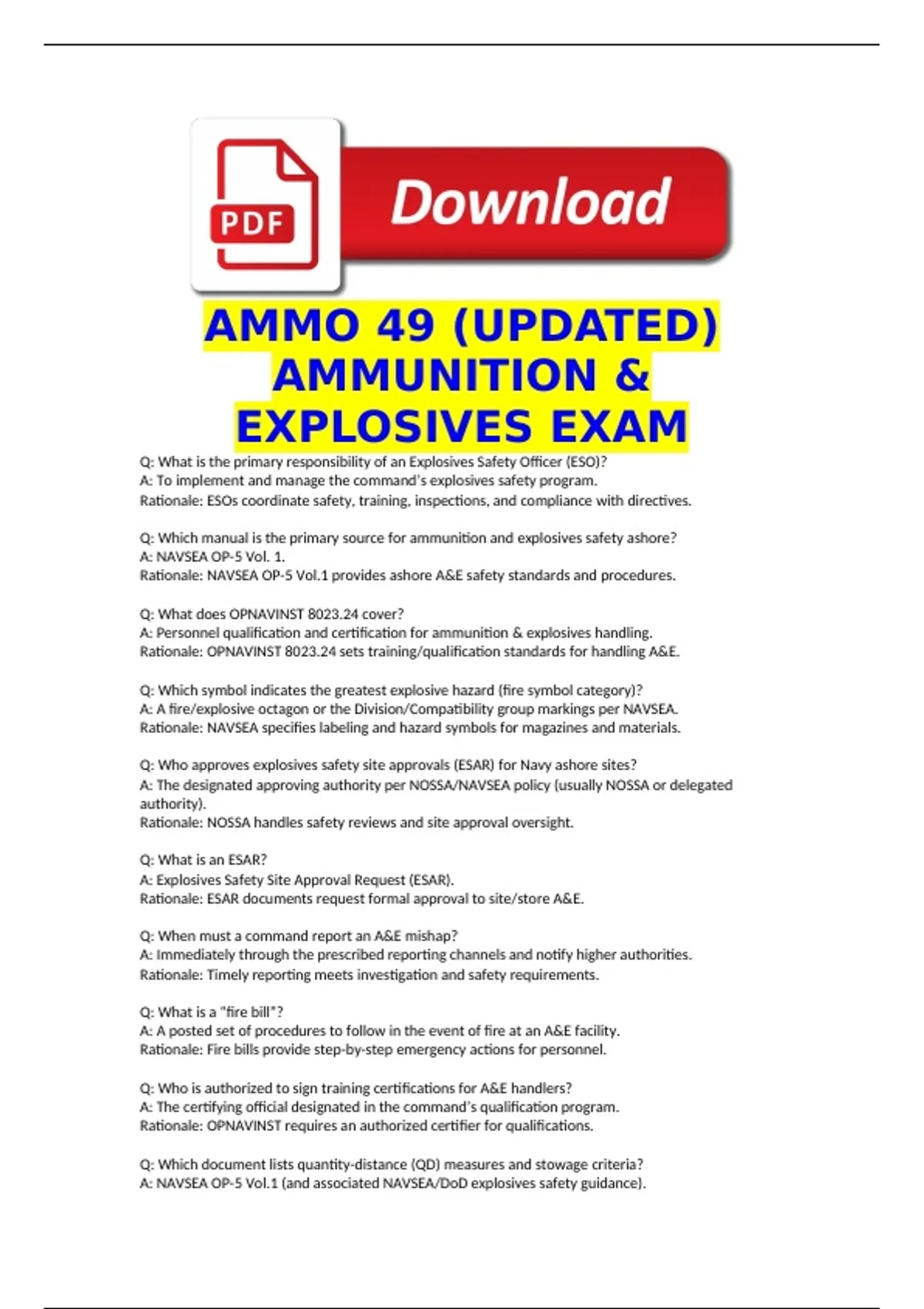 A: NAVSEA OP-5 Vol.1 (and associated NAVSEA/DoD explosives safety guidance).