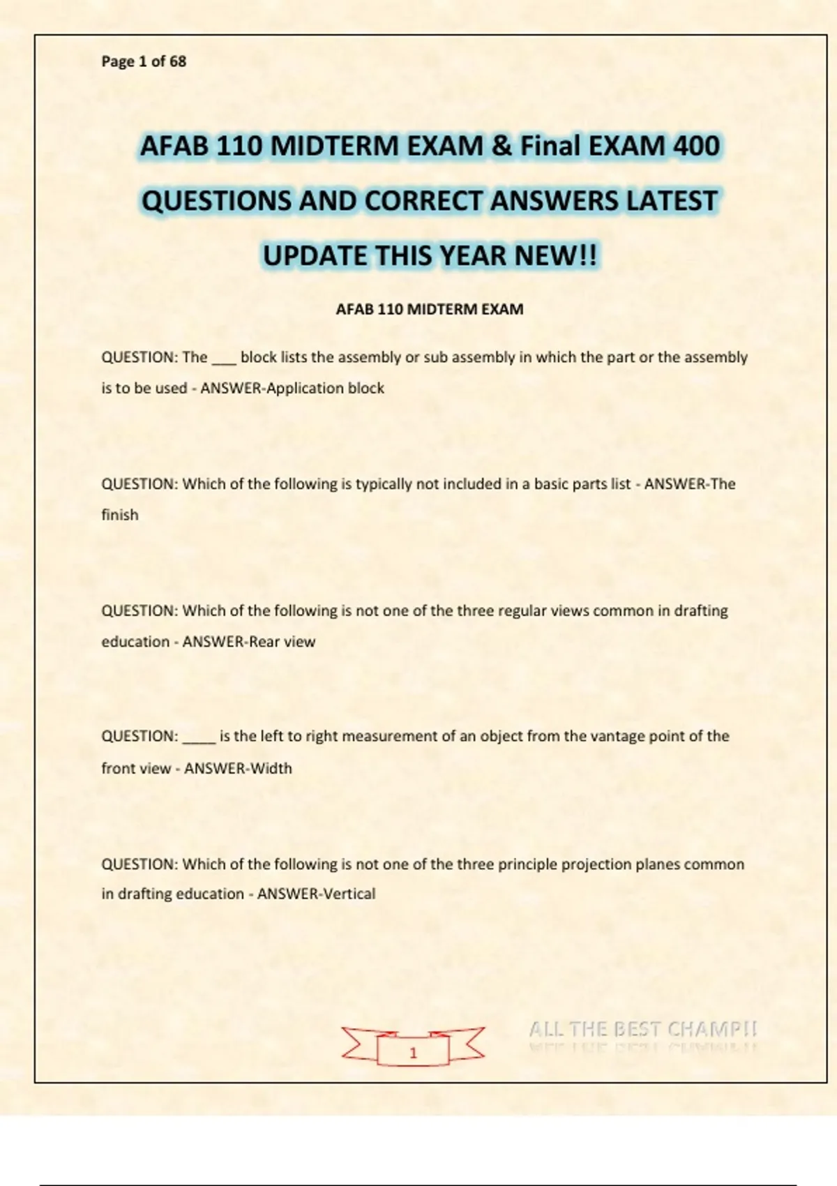 AFAB 110 MIDTERM EXAM & Final EXAM 400