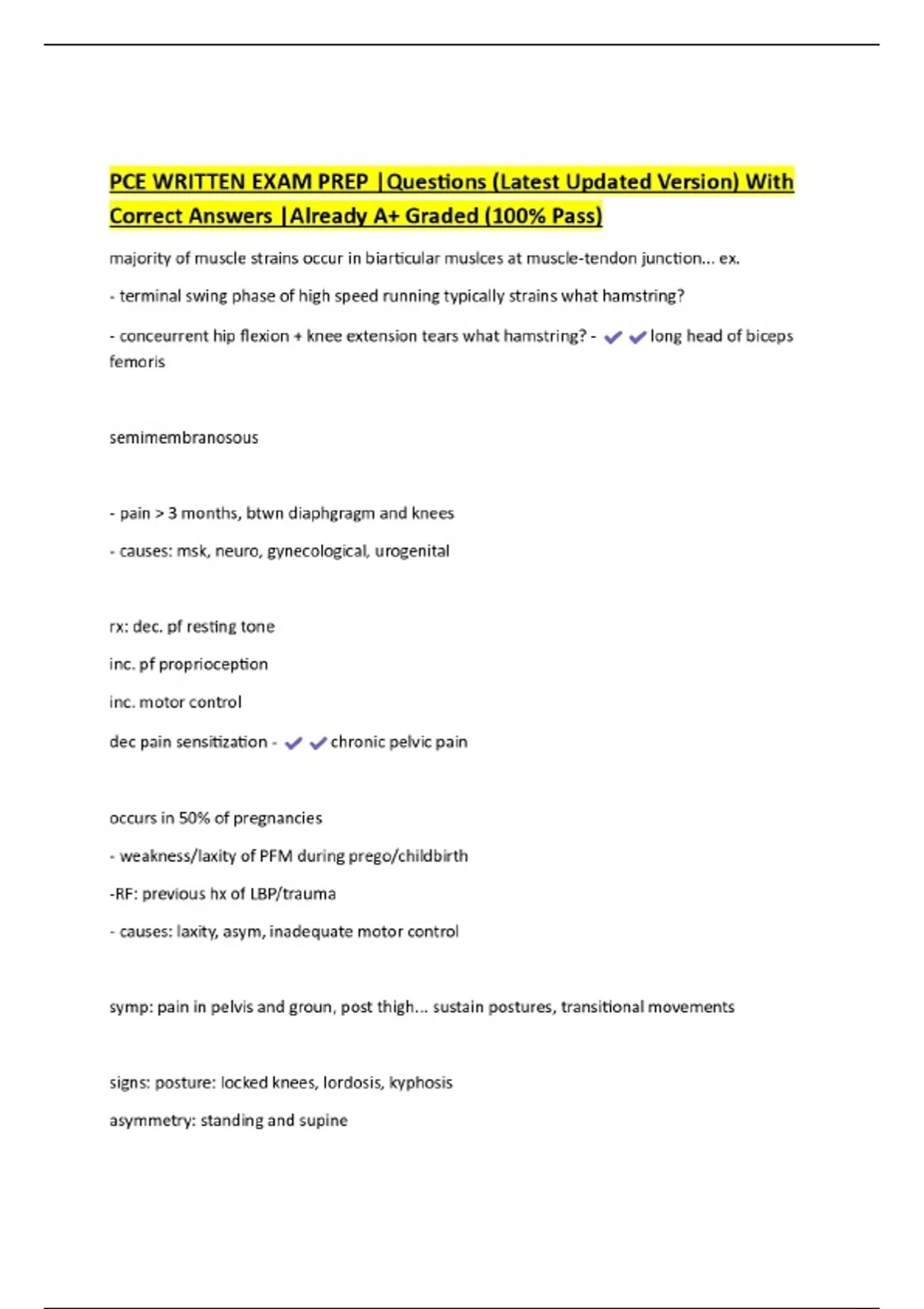 PCE WRITTEN EXAM PREP |Questions (Latest Updated Version) With Correct Answers |Already A+ Graded (100% Pass)