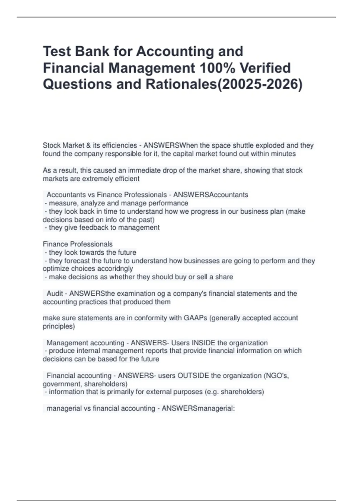 managerial vs financial accounting - ANSWERSmanagerial:
